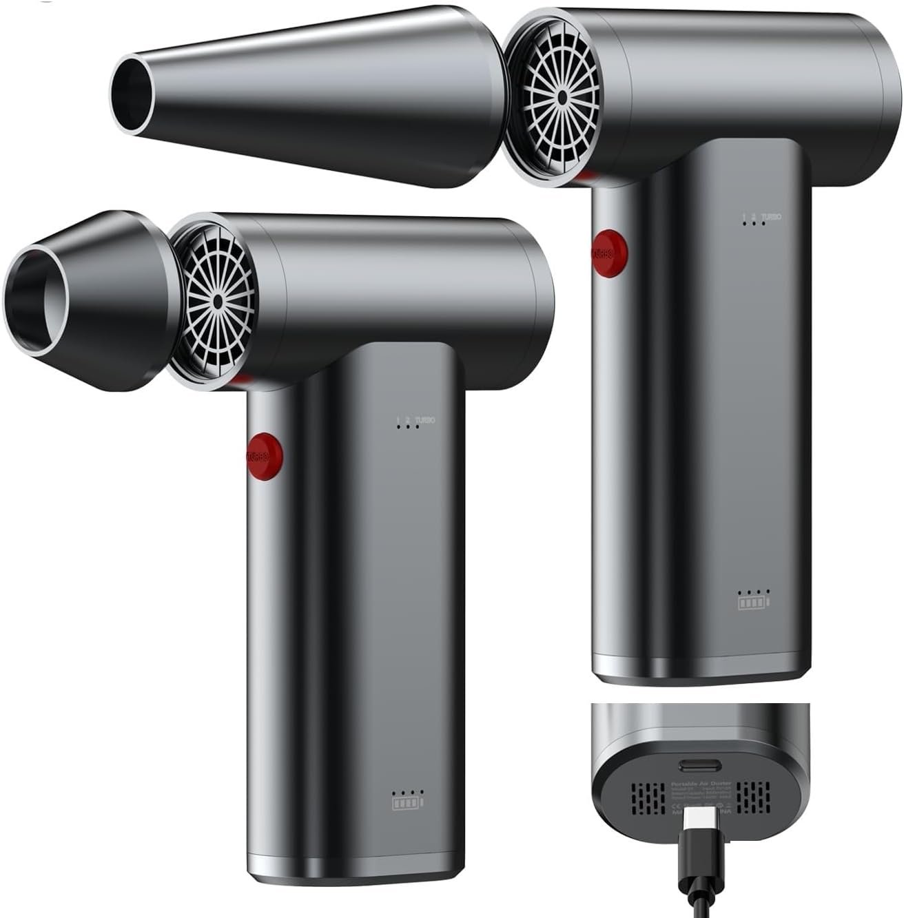 【Portable and Cost-Efficient】This jet dryer blower boasts a compact design,measuring just 6 inches in length,making it convenient for portability.It is reusable,allowing for multiple applications without the need for wasting time on disposable air cans.With just a one-time investment,it caters to your everyday cleaning needs.