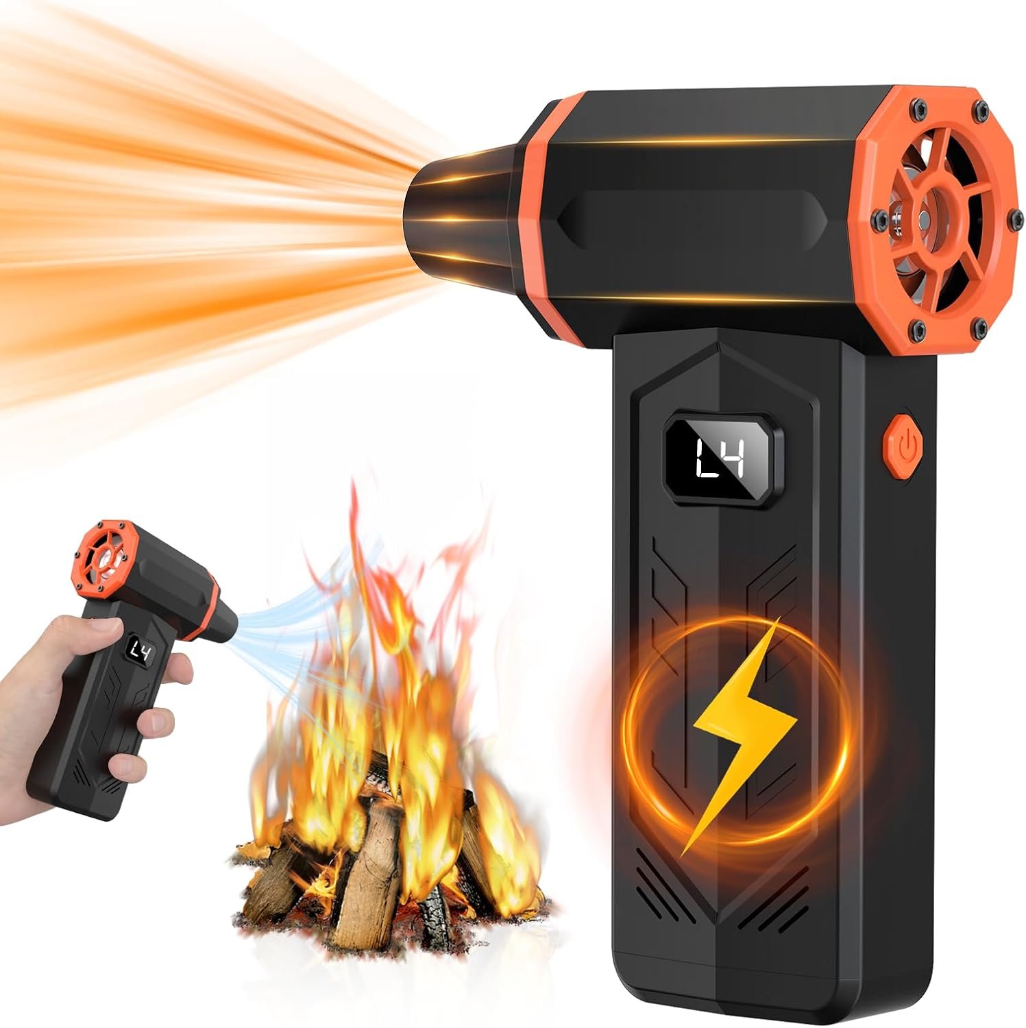 【Led Display Screen & Light】 This electric air duster come with Led display,it can shows the real-time power and gear level.The light can be switched High/SOS mode in one click,which allow you use it in need.This is the new design of our electronic duster.