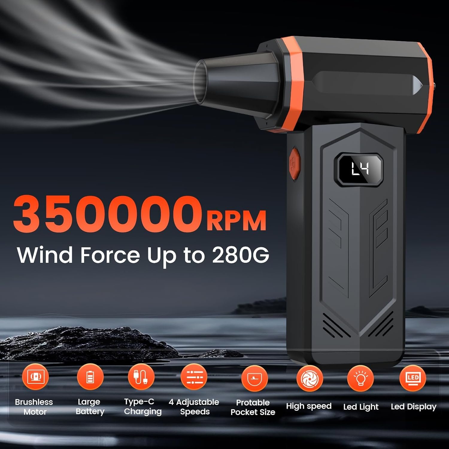 【High-Speed】The air duster reaches up to 350,000 RPM, delivering 280G wind pressure.This electric air blower come with four adjustable speed settings cater to different cleaning needs.Jet dry blower effectively removes dust and debris from keyborad/computer/car, drying surfaces quickly.