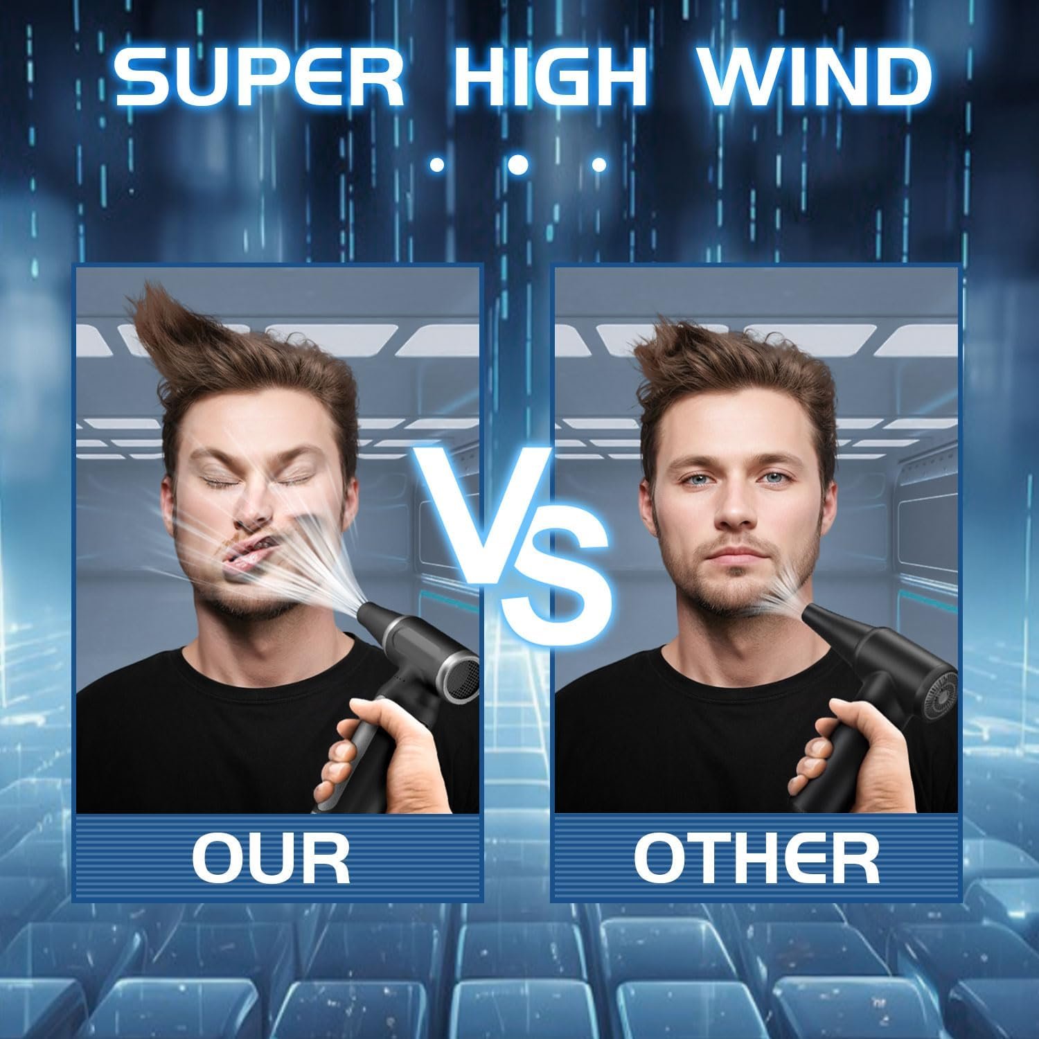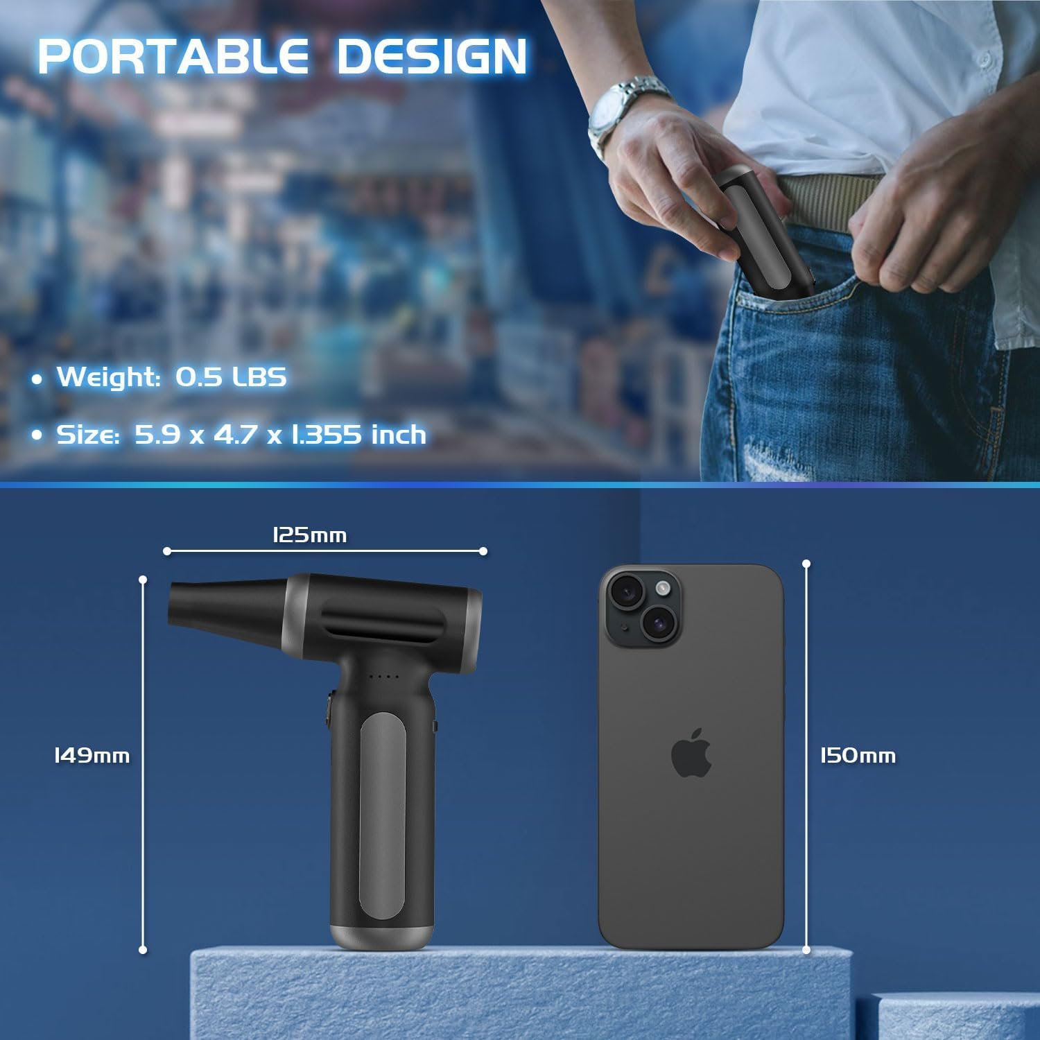 Turbo fan【Super High-Speed motor 300000 RPM】–This air duster the maximum speed of【 300000 RPM】,【200 G】 wind pressure, delivering strong performance with a peak wind speed exceeding【 120m/s】,mini blower easily clear the dirt hidden in various gaps on the keyboard or any electronic devices,electric duster strong wind and high performance.