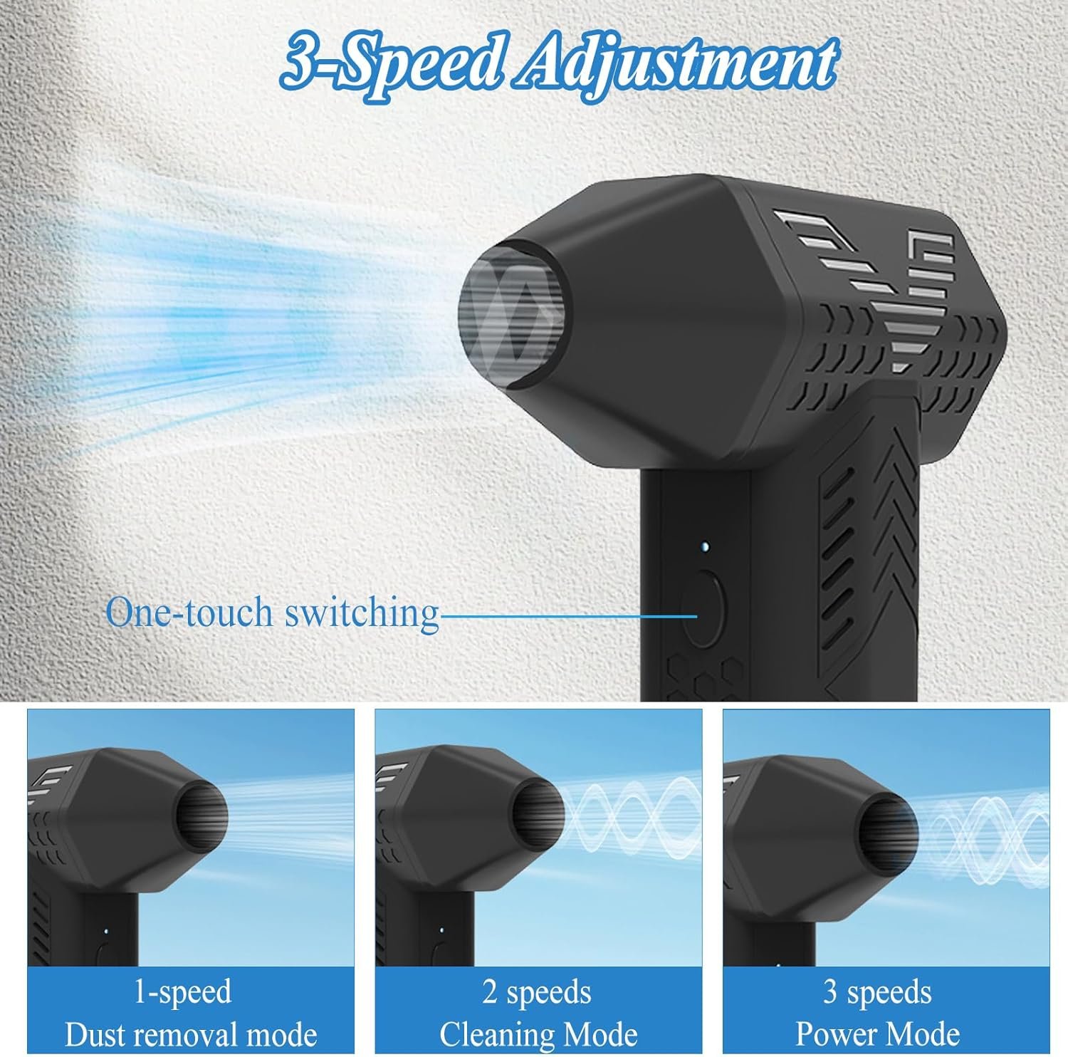 【3-Speed Adjustment】The air duster has 3 wind speed levels that can be adjusted, with a one-touch start button and LED indicator light, easy to use.Type-C charging port, it only takes 2.5 hours to fully charge, and the low level can last up to 50 minutes of continuous running time.
