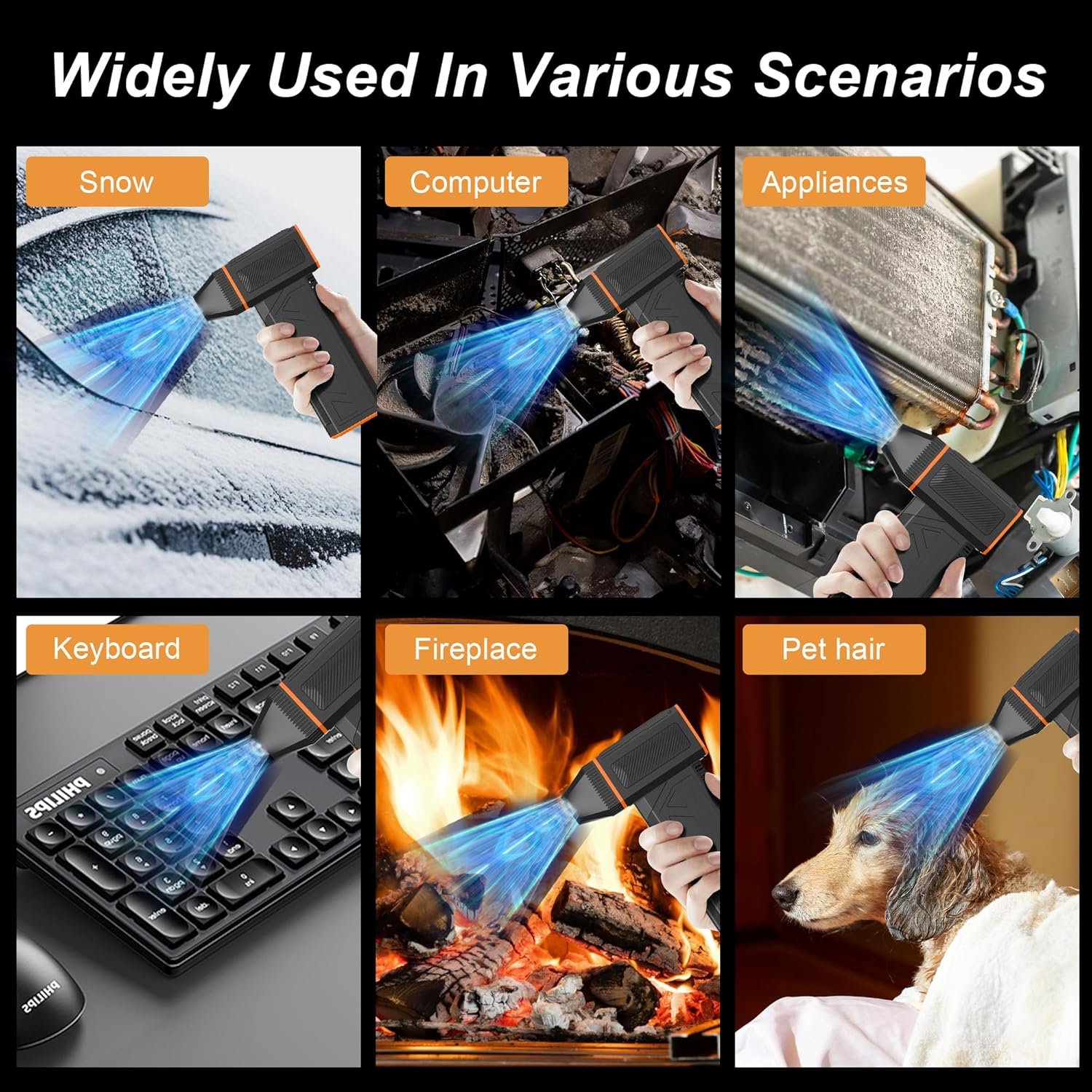 【Versatile Applications】Our electric air duster blower with 10 different shabu heads. Makes it easy to remove dust, dirt, keyboard PC, computer, car interiors, air mattresses, home appliances and difficult-to-reach spots in the house.