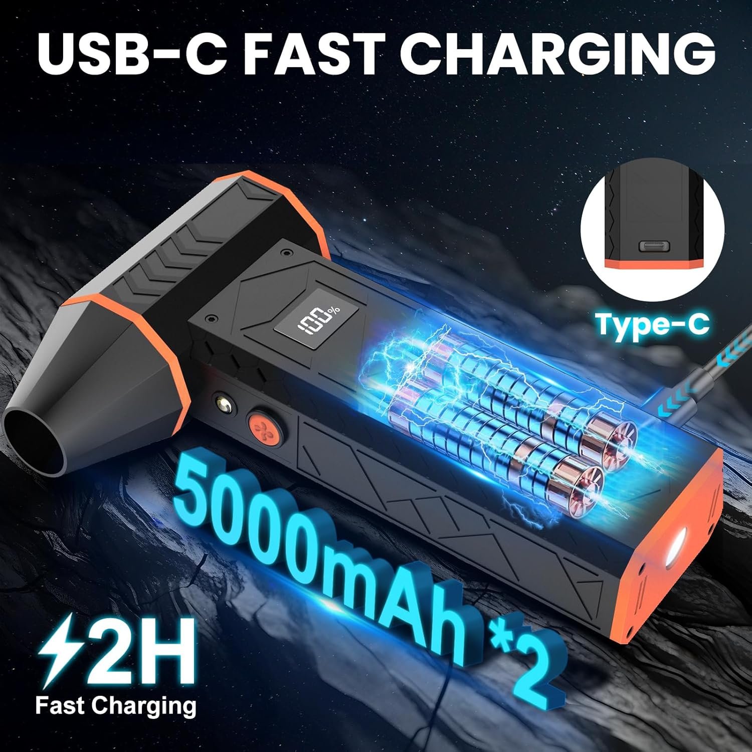 Rechargeable & Eco-Friendly: The air duster has a built-in 10000mAh high capacity battery, which can be recharged in just 2.5H. Compared with compressed air, our air duster can be used repeatedly. No liquid or ice will be formed during the cleaning process, protecting your electronic devices from liquids.