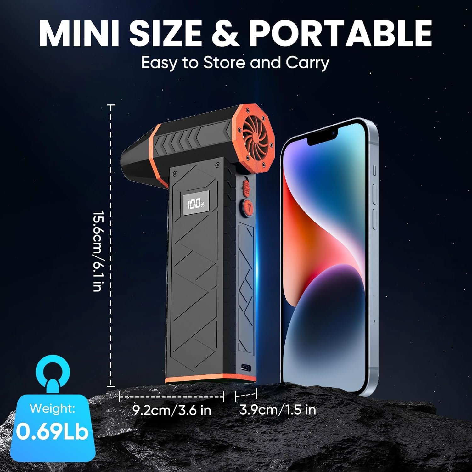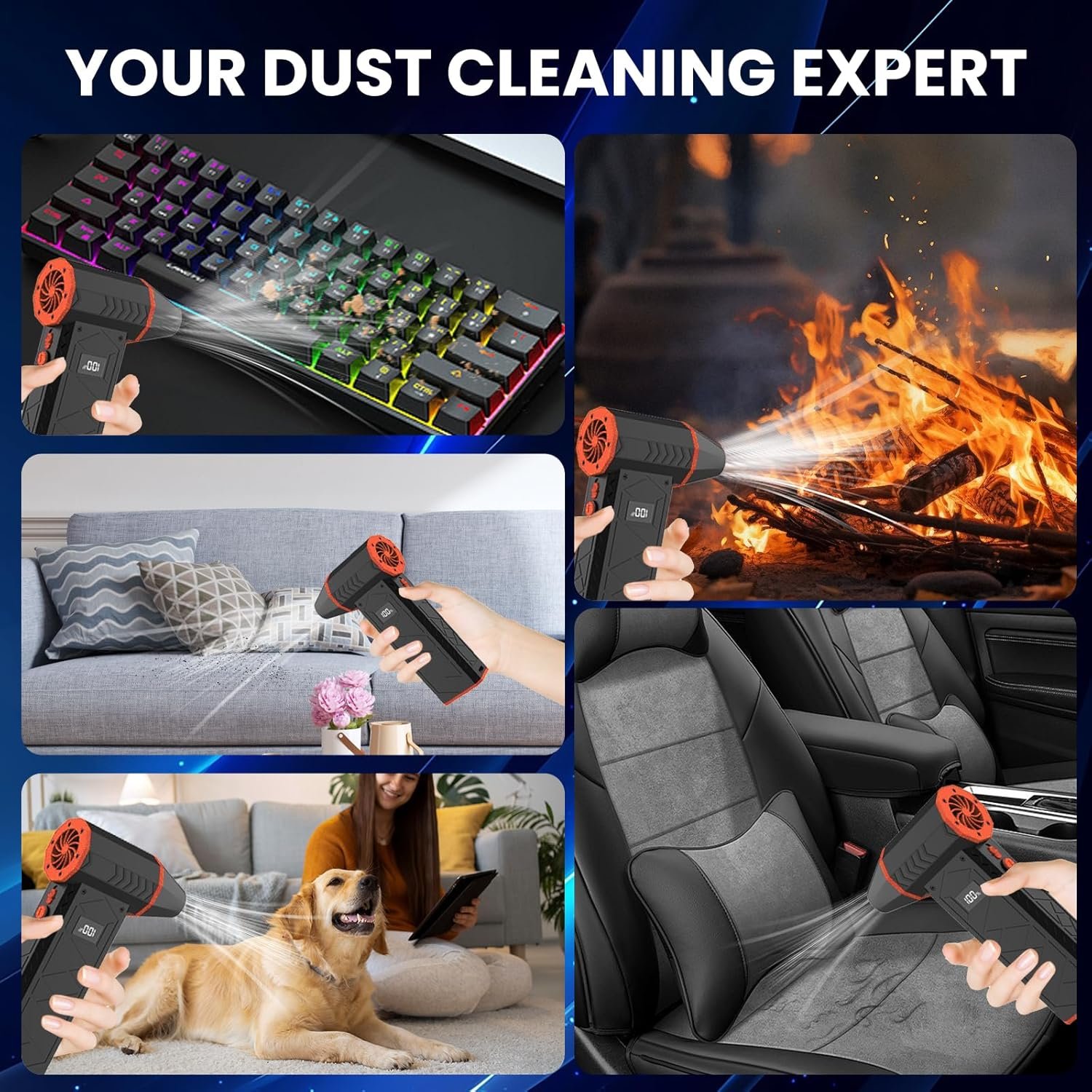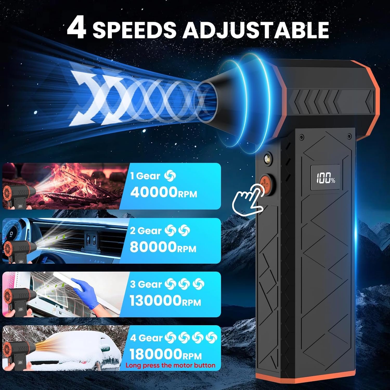 Powerful Compressed Air Duster: The electric air duster features the latest powerful motor with a maximum speed of 180,000 RPM, max. wind pressure is 195g. The powerful air force easily removes dust and dirt from your equipment. 4 adjustable speeds meet the daily cleaning needs of your home, office and outdoors.