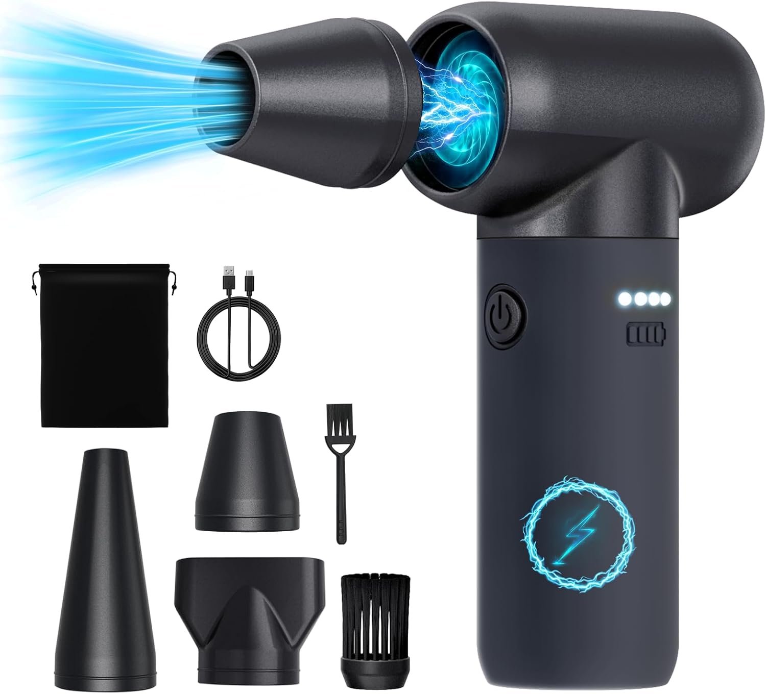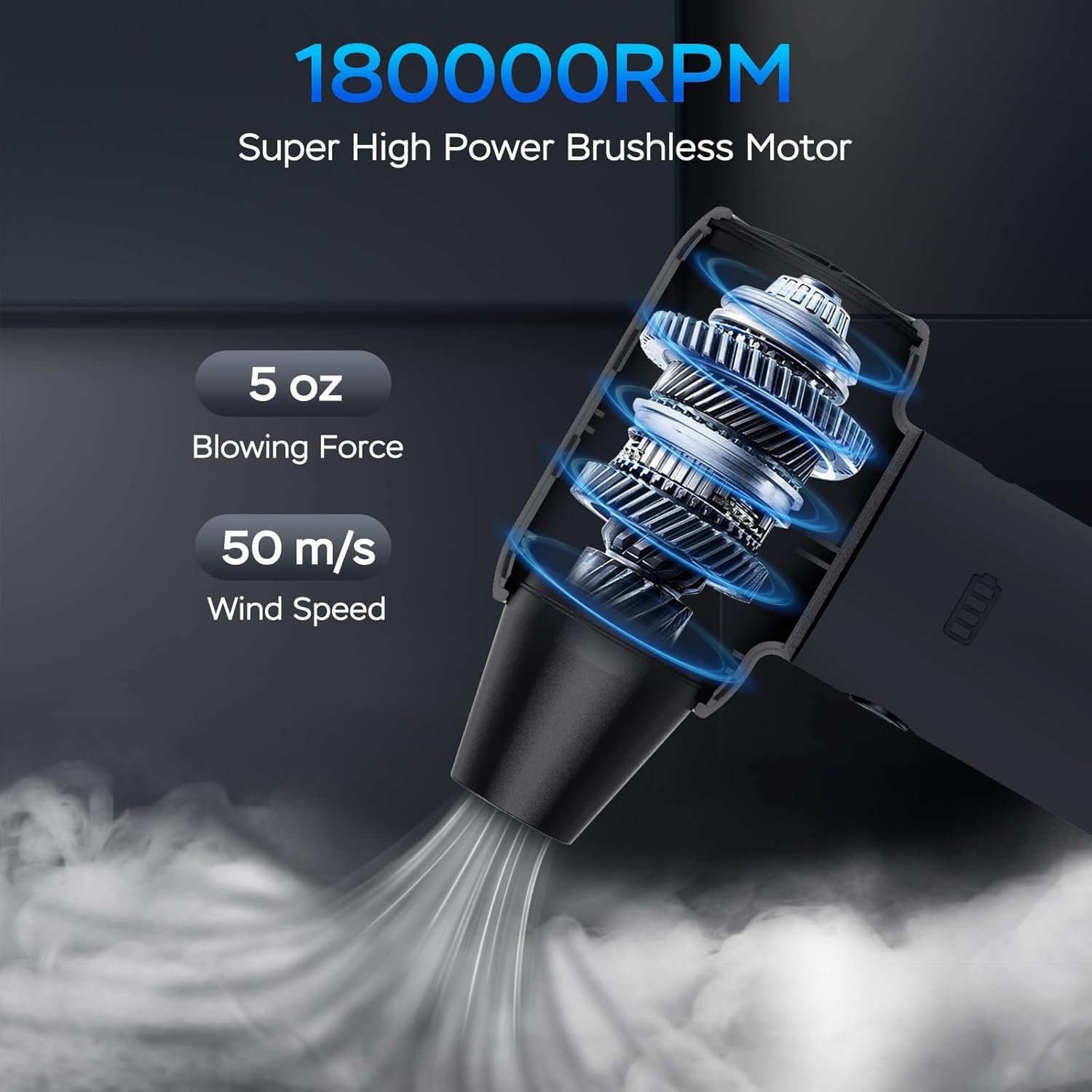 【Powerful Brushless Motor】Featuring a high-speed brushless motor, this jet fan boasts a maximum speed of 180,000 RPM, reaching air speeds of up to 50 m/s and a maximum wind force of 5 oz. It effortlessly handles everyday cleaning and tougher tasks with ease.