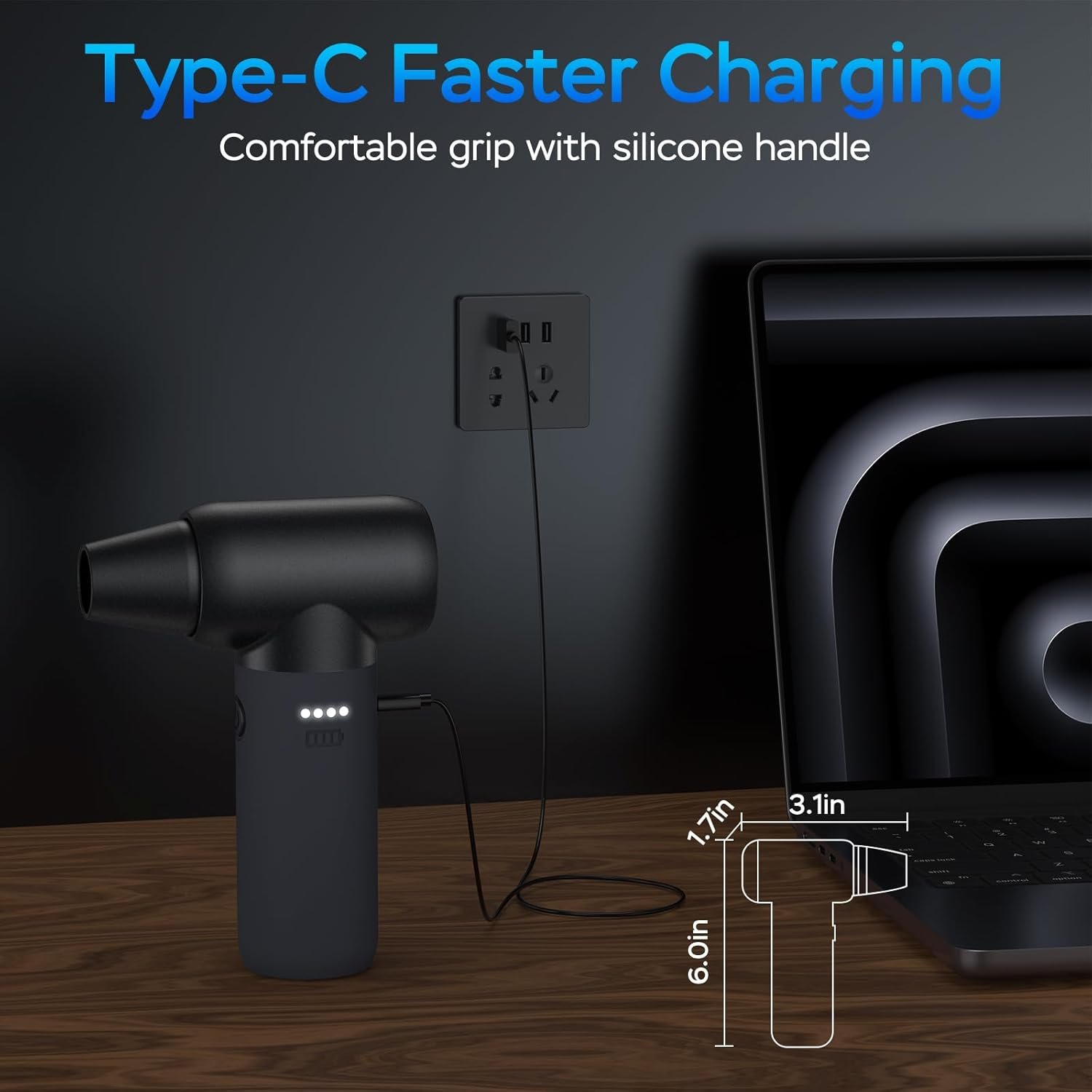 【Small and Portable】Measuring a compact 6 inches in length and featuring a lightweight, wireless design, this cordless electric dust blower is incredibly portable. Its ergonomic design includes a silicone handle for a comfortable grip during extended use. Effortlessly carry it anywhere for convenient cleaning tasks, making dusting easy.