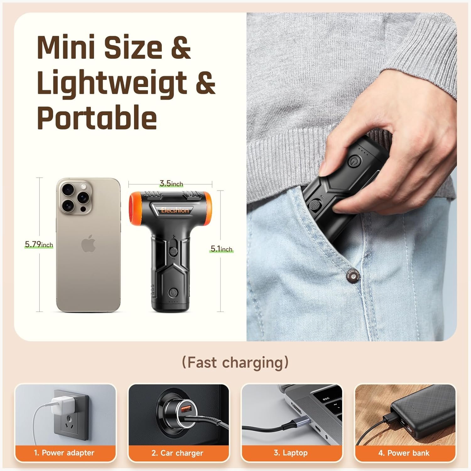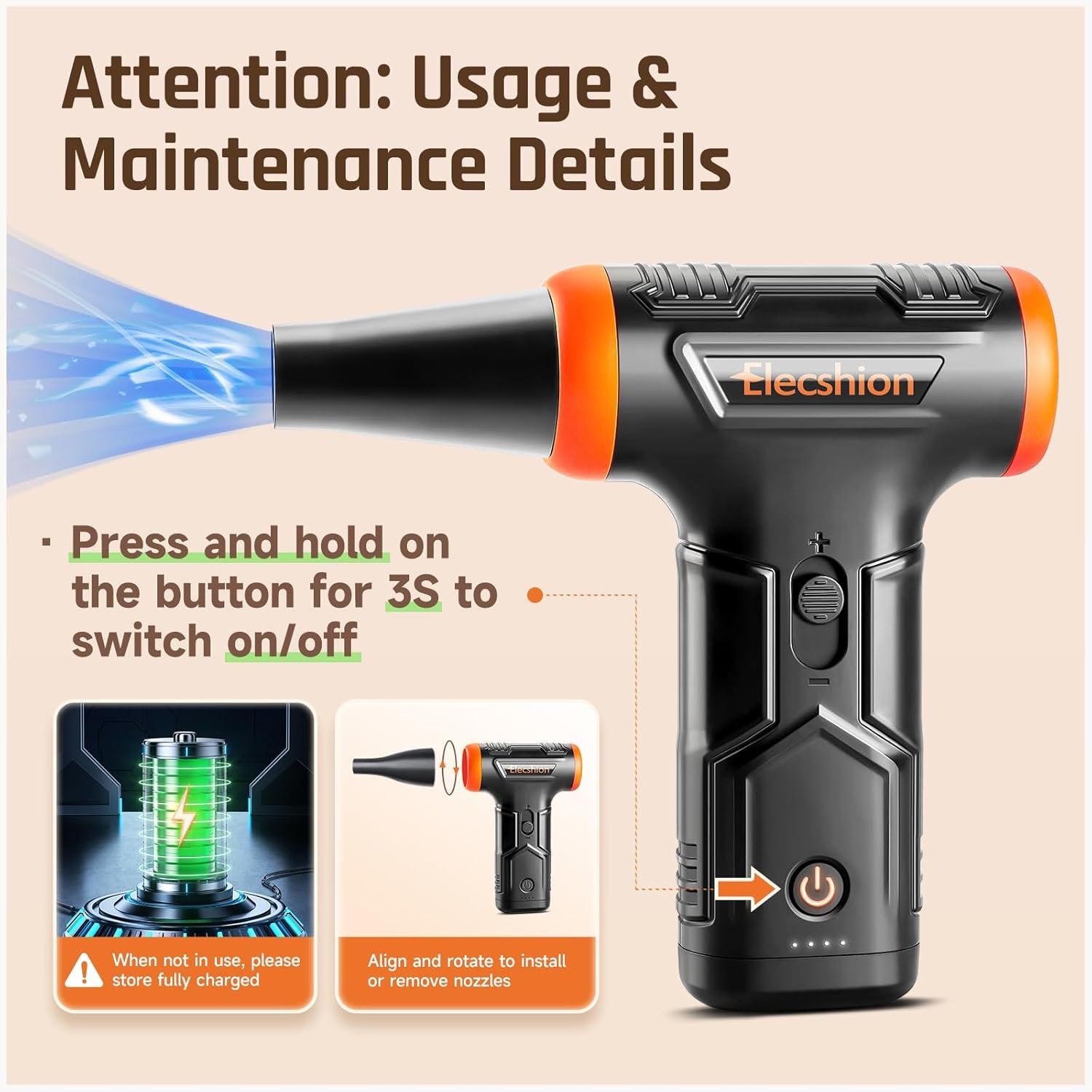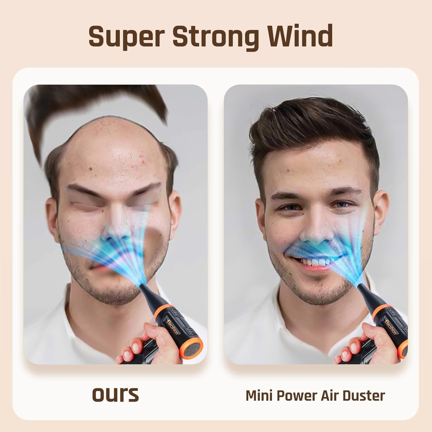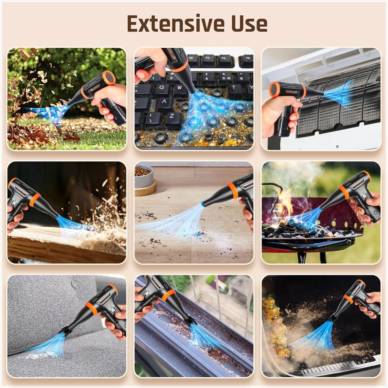 Cordless Air Duster Enjoy Freedom : Experience ultimate convenience with our cordless blower, which provides unrestricted movement and flexibility. Ideal for a variety of cleaning tasks, whether at home, in the car, or outdoors, without the hassle of tangled cords.