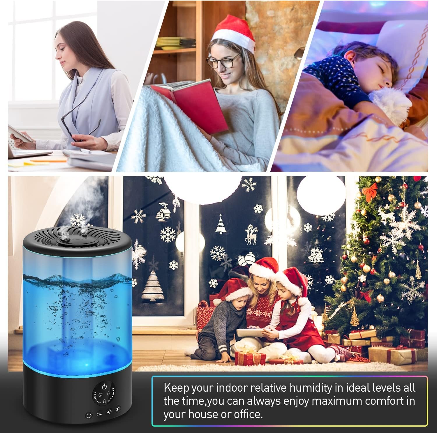There are High/Medium/Low mist levels which can be adjusted according to your individual needs. Maintain an ideal humidity level for office, home, bedroom, living room, baby room and other medium-sized rooms.