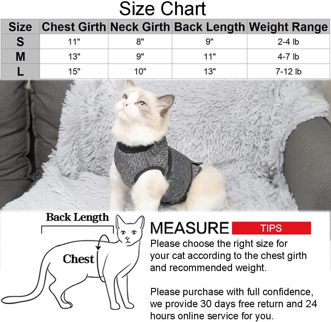 【RISK-FREE PURCHASE】Coppthinktu team are professional and responsible pet lovers, pls purchase our cat storm anxiety jacket with full confidence, we provide 30 days free return and 24 hours service for you. Any questions, pls email us for a satisfactory solution.Please choose the right size for your cat according to the chest girth and recommended weight.