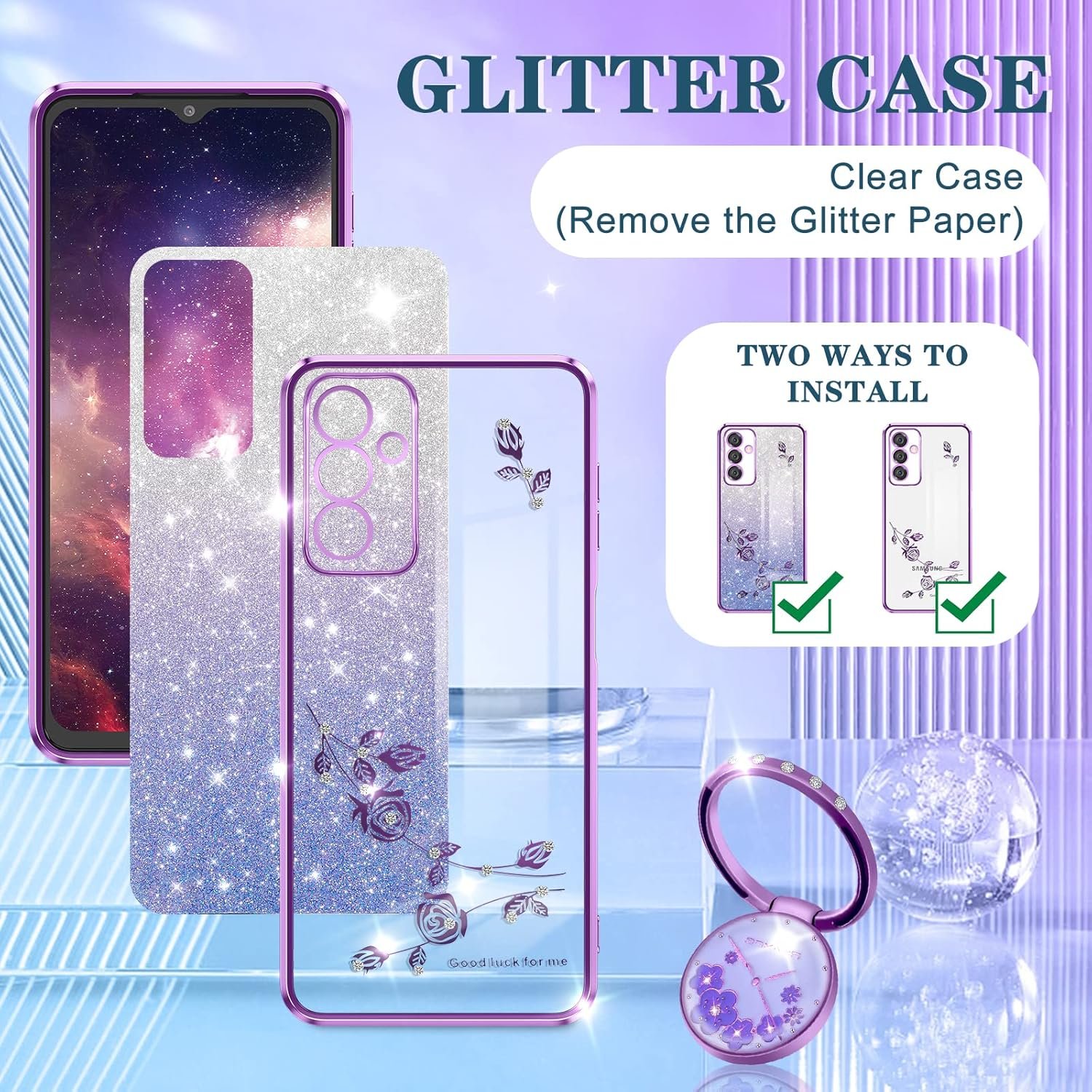 Good choice: The glitzy diamond petals A14 for Samsung phone case makes your phone distinctive and eye-catching, it comes with a pretty stand and a glitter sheet, this for Galaxy A14 case is a good choice for family, lover and friends, it is suitable for all occasions.
