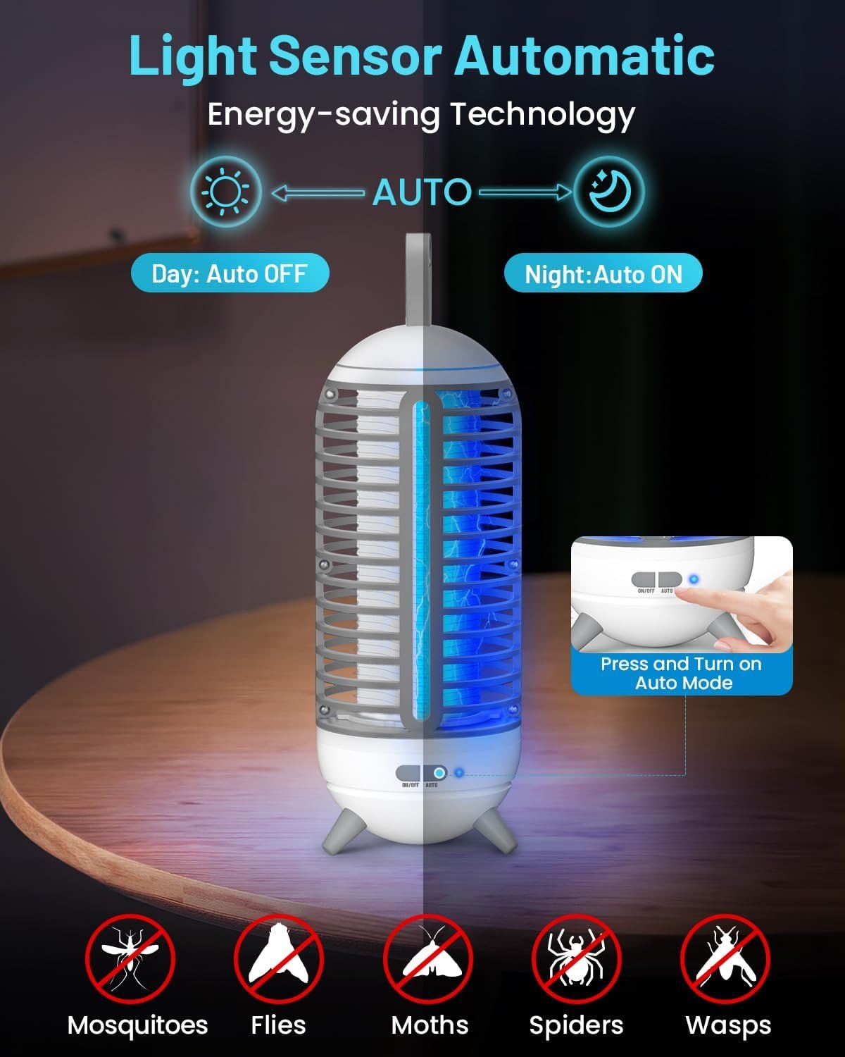 Day & Night Sensor and Portable : The automatic light sensor is a valuable addition as it allows the bug zapper to automatically switch between mosquito control mode and hibernate mode . This ensures that it operates when insects are most active (nighttime) and conserves energy during the day. The mosquito Killer’s portability makes it easy to carry with you.