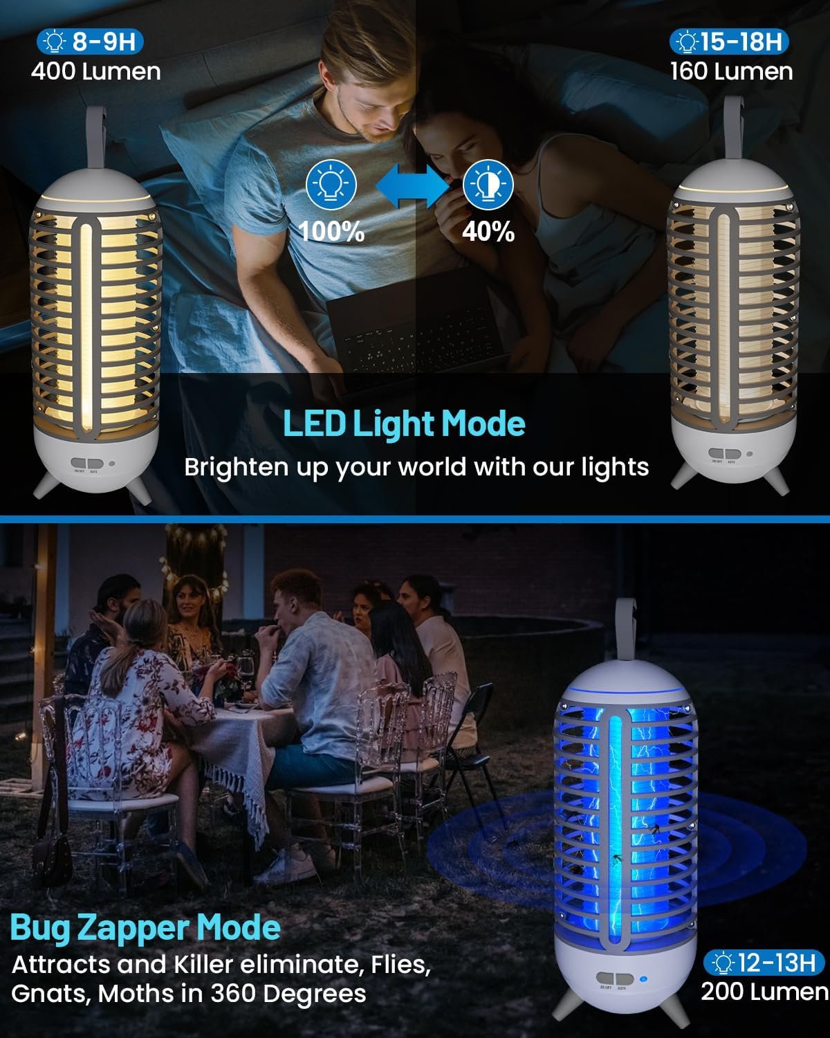 Dual Functionality – Warm Light and Purple Light: The Outdoor bug zapper not only serves as an insect control device but also provides desk lamp-level lighting. Fly zapper’s dual functionality can be particularly useful when using it indoors, as it eliminates the need for an additional light source. Mosquito Killer also makes it versatile for outdoor activities like camping.