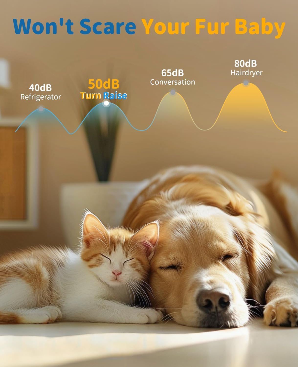 🐶👍【50dB Quiet Dog Clippers】The Dog grooming clippers delivers high speeds and low vibration, and will never scare your fur baby. The noise is less than 55dB, making it easier to groom your pet around the ears and face, where your pet may be more sensitive to noise. You’ll be able to trim its coat with ease and much faster!