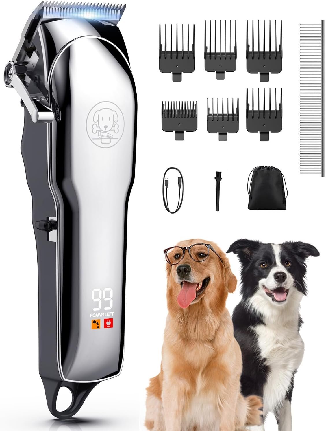 Cordless Dog Clippers for Grooming Professional for Thick Hair Coats, Low Noise Shaver Dog Grooming Kit with LED Display, Razors Dog Hair Shears Ceramic Blade, Pet Hair Trimmer for Dogs Cats (MS041)
