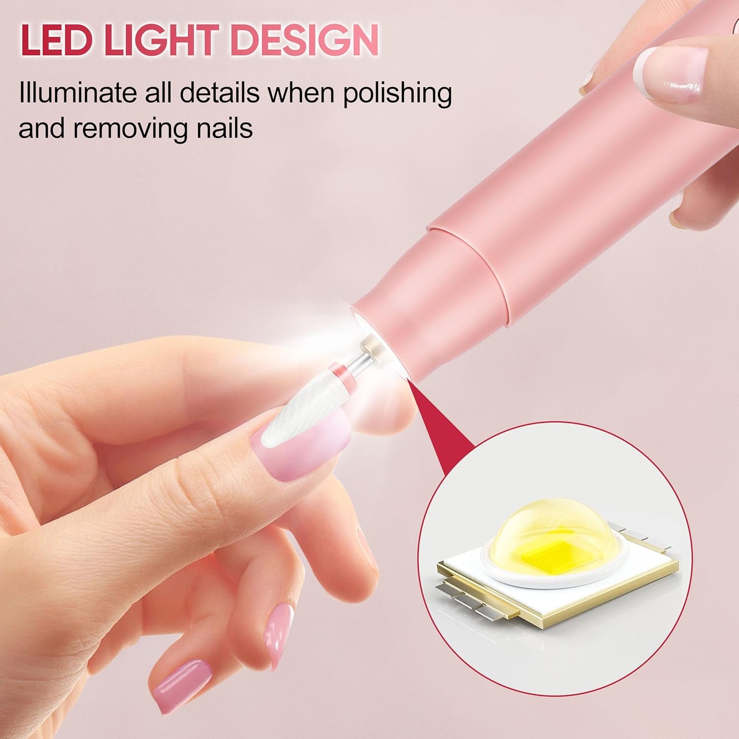 LED Light Design: Electric nail filer machine is specially designed with LED light to illuminate all details when polishing and removing nails, better control of nail design progress, prevent excessive grinding or cutting, provide you with a safer nail care environment, and suitable for home manicure use.