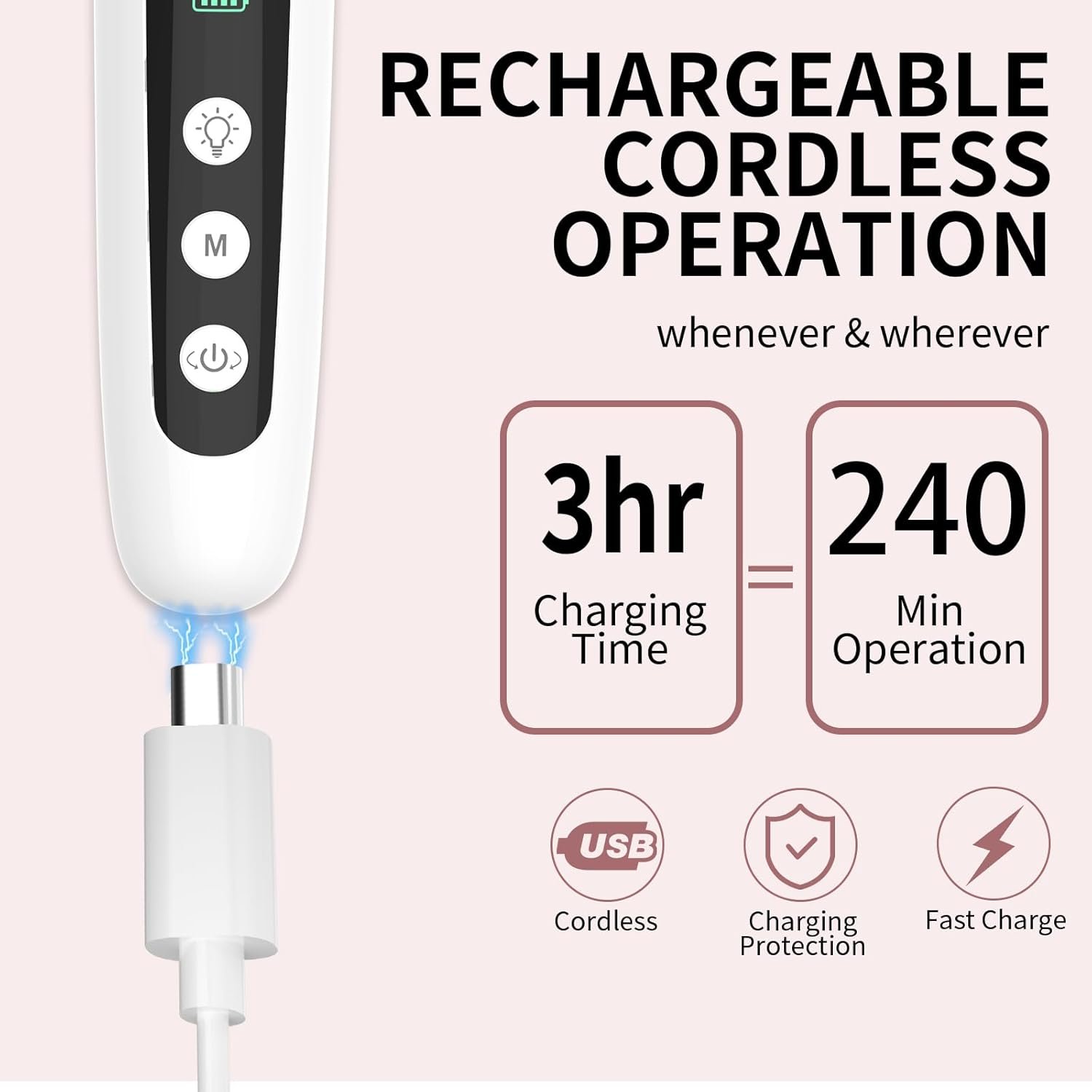 Cordless, Rechargeable, LCD Display: Type C USB Cable included, this electric manicure pedicure kit can be up to 4 hours of Runtime on a single charge, LCD Display help remind you the rest power it left and the Speed level you used. Professional electric nail file for home salon use, or travel , you can do a spa hand and foot care experience at anytime anywhere you want.