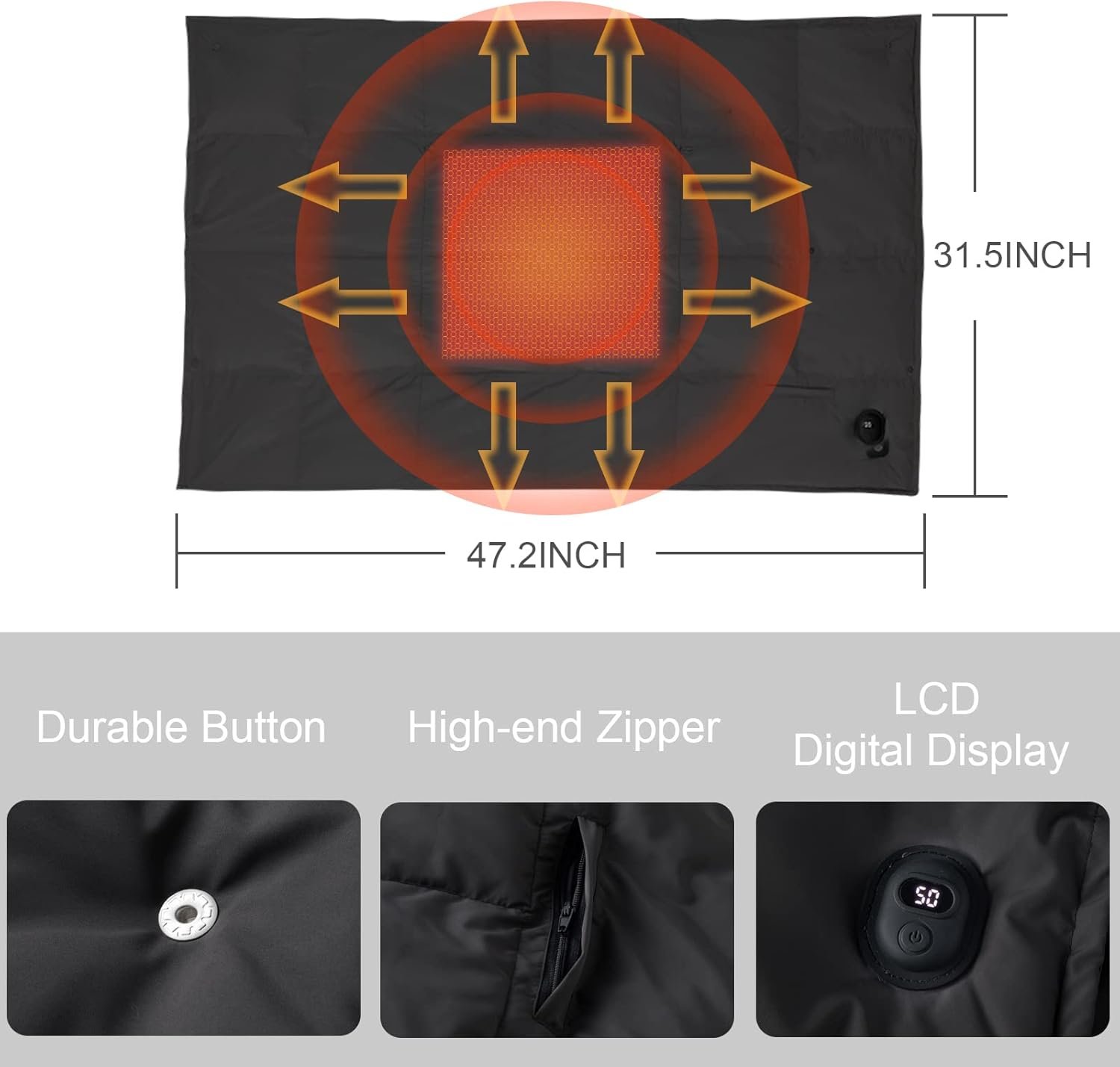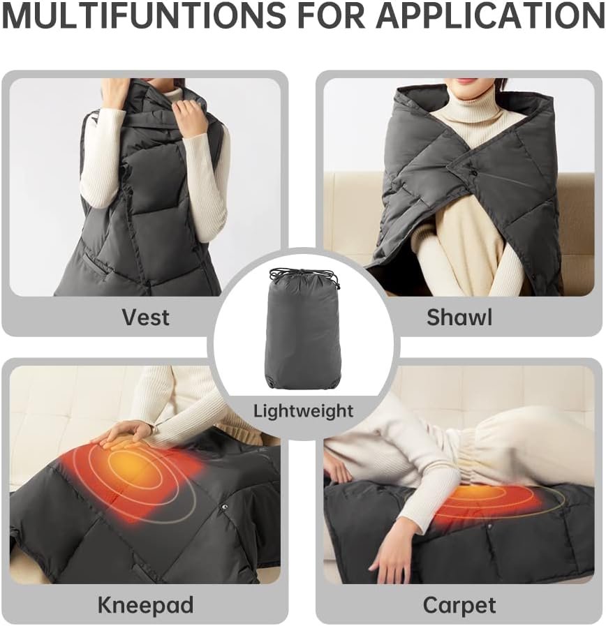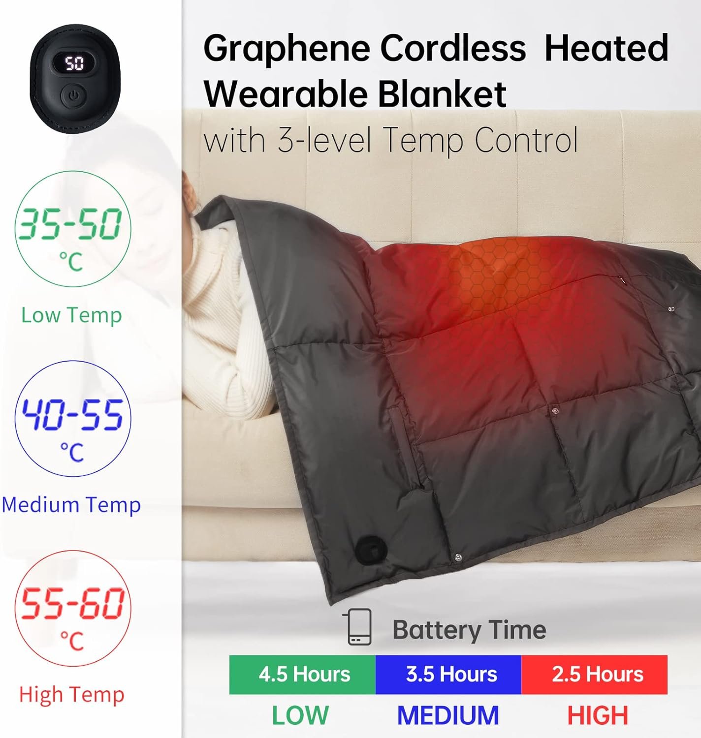 2 in 1 Far-infrared Therapy Wearable Blanket with 3 Heating Levels with Battery Pack