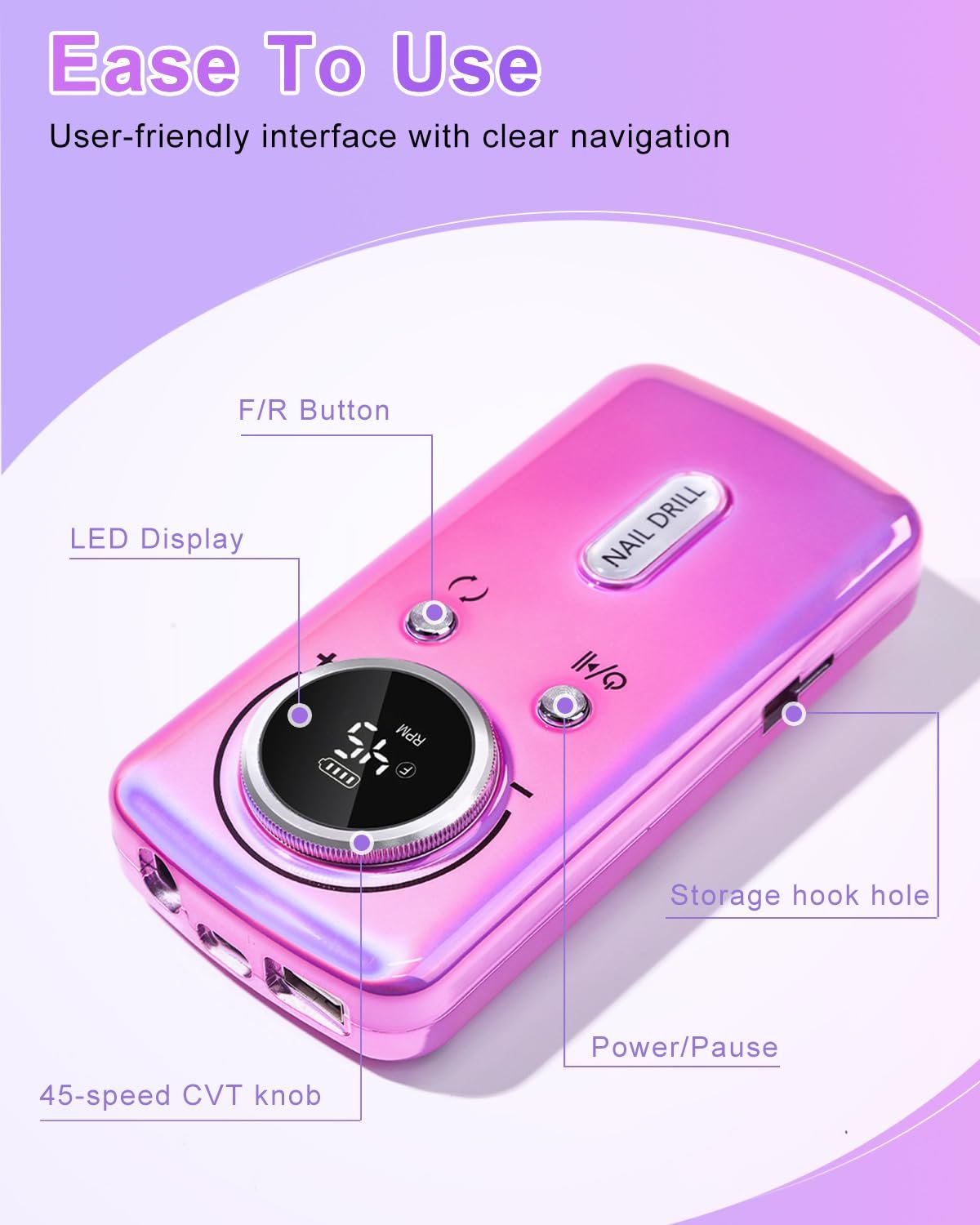 【Easy to Use】Simplify your nail care routine with our nail drill’s intuitive design. Easy-to-use controls and a comfortable grip make it accessible for both beginners and experts, allowing anyone to achieve salon-quality manicures and pedicures with minimal effort.