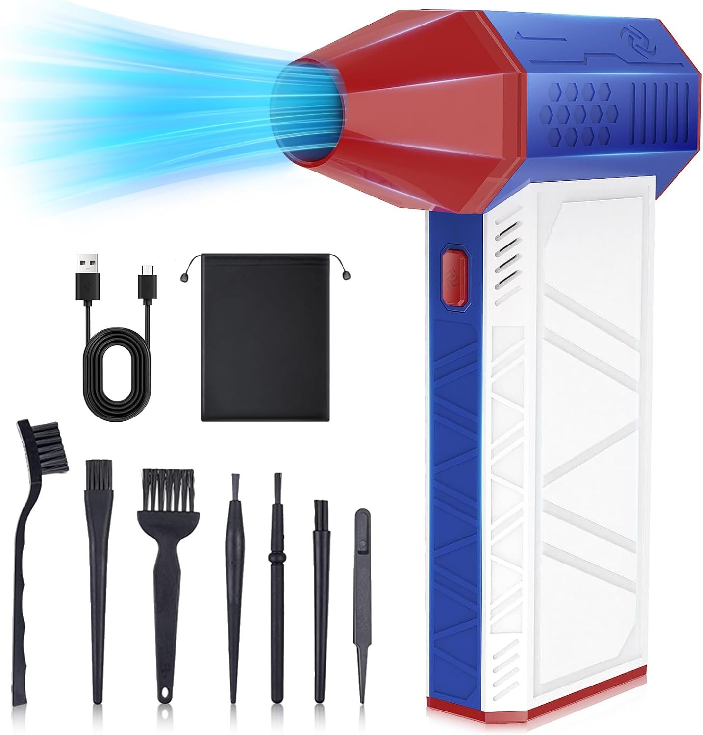 【Magnetic Nozzle & Best Efficiency】The Mini cordless air duster is equipped with a magnetic nozzle that concentrates airflow for faster blow drying. It can quickly eliminates dust and dirt from every corner, ensuring surfaces are spotless and streak-free. Say goodbye to tedious dusting or drying.
