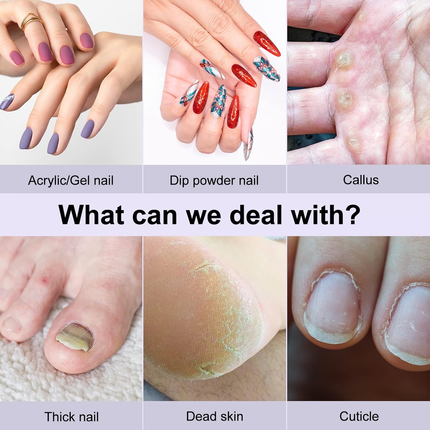 Multifunctional for Mandicure and Pedicure: With adjustable speeds and forward/reverse direction options, this nail drill machine comes with various professional grinder bits, you can customize your various manicure and pedicure routine to your liking
