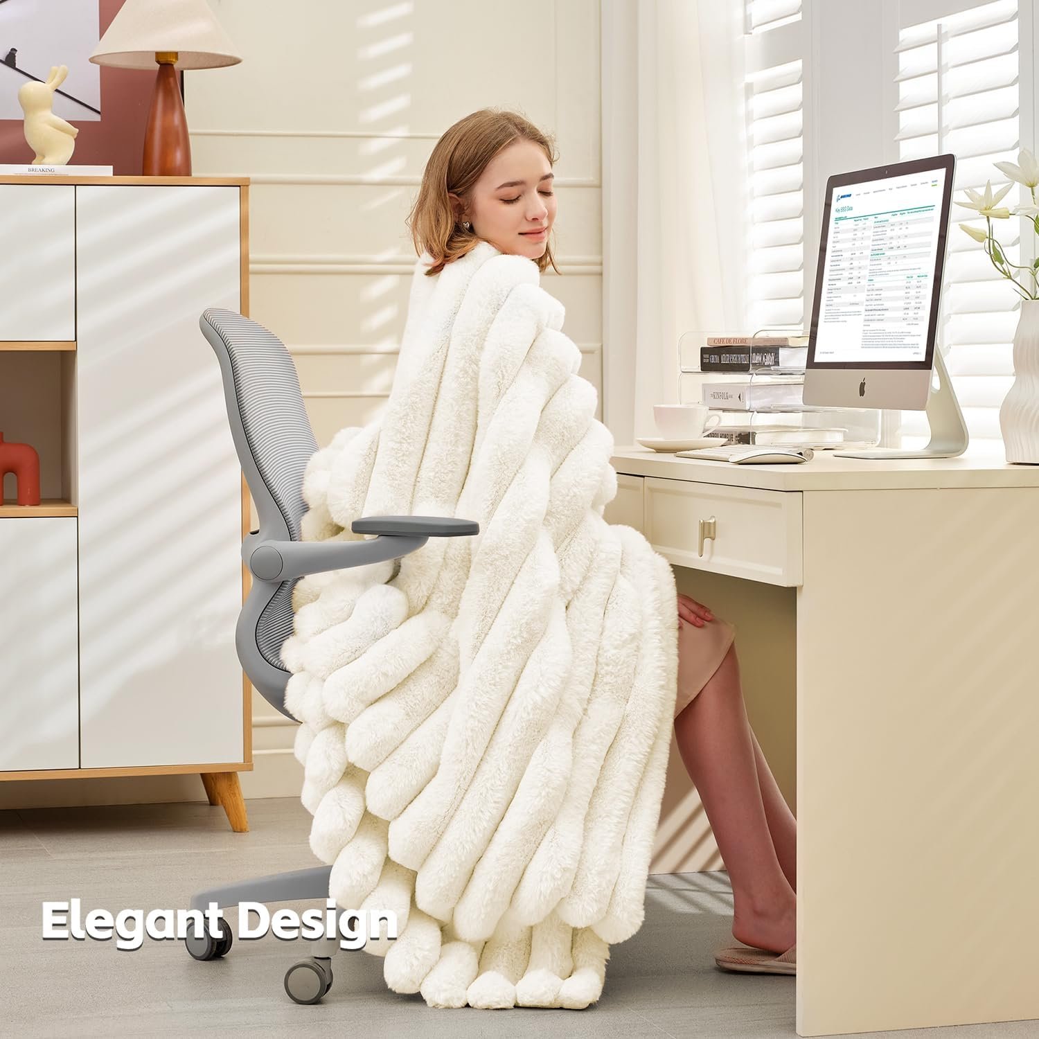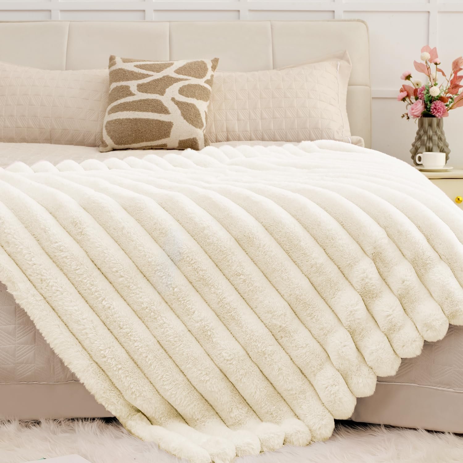 Tejoe Faux Rabbit Fur Striped Blanket,an opulent addition to your abode.