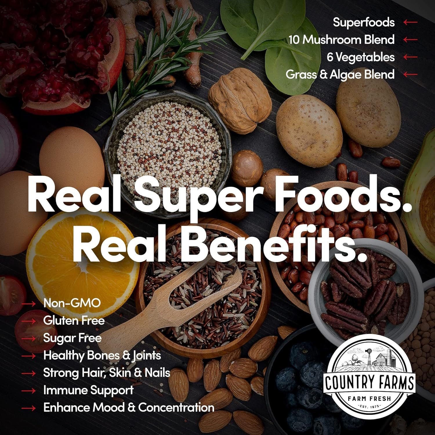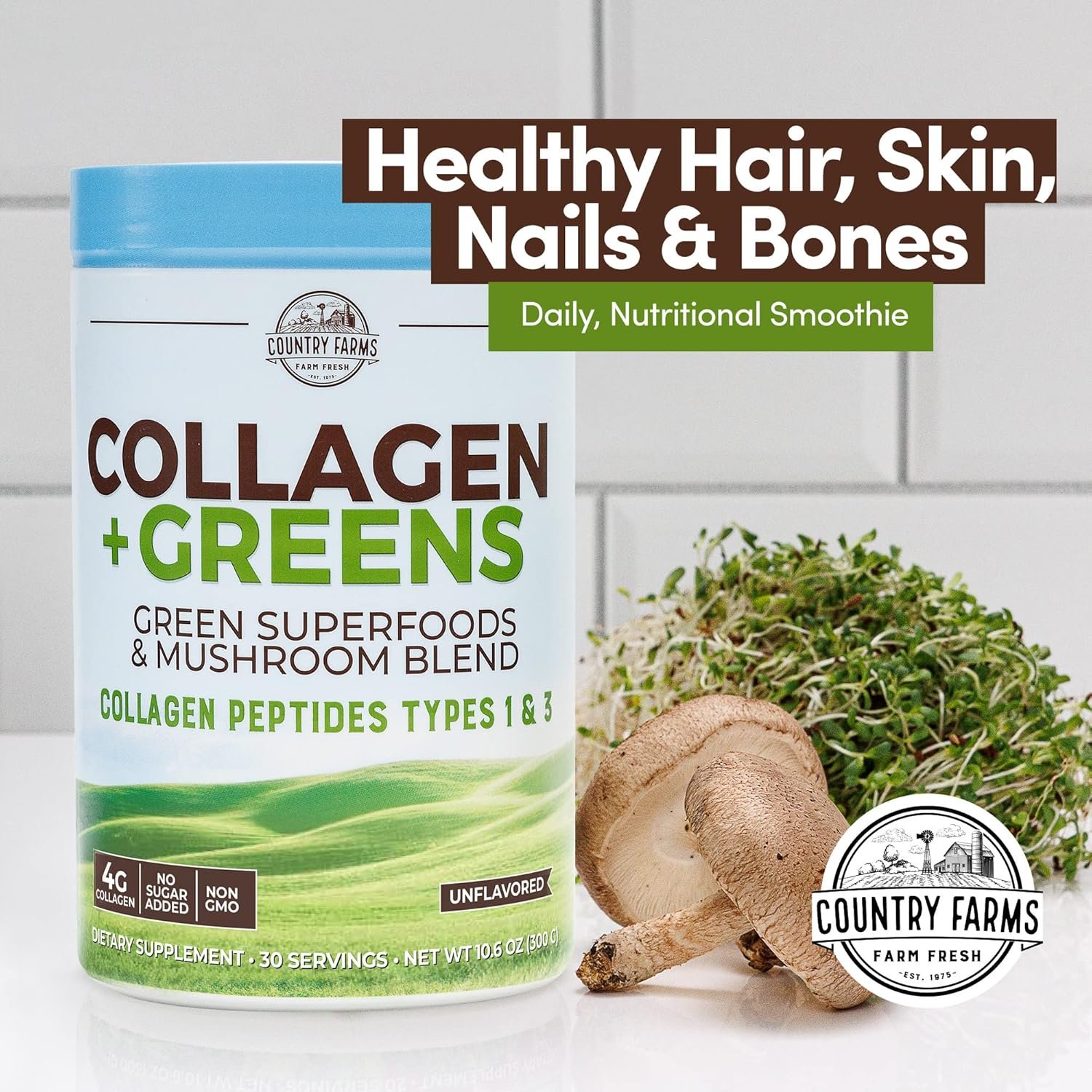 ENERGIZING, MINERAL-RICH FORMULA: Country Farms Collagen + Greens provide a combination of alkalizing, and mineral-rich green superfoods to help support natural detoxification to look and feel your best every day.