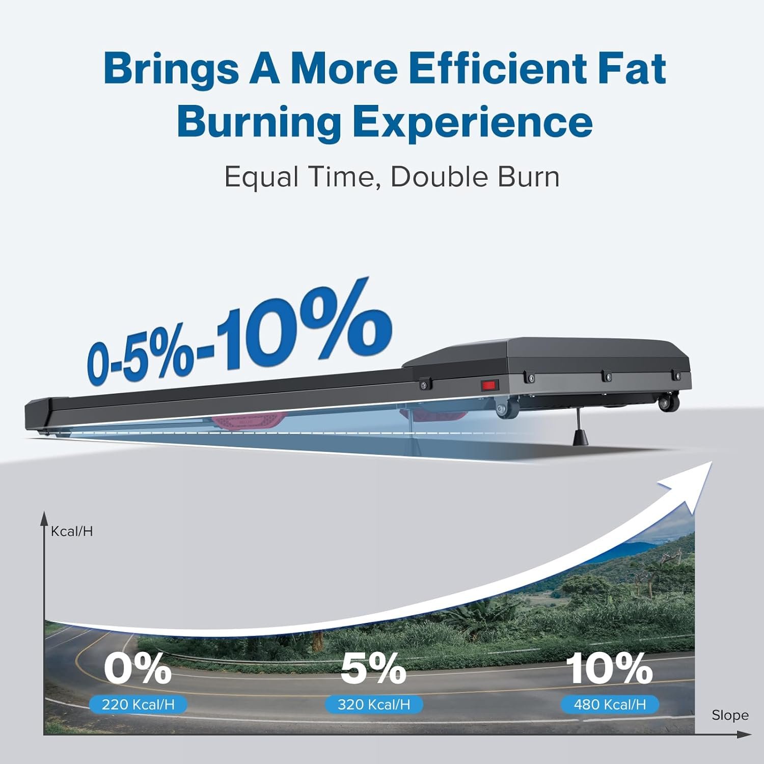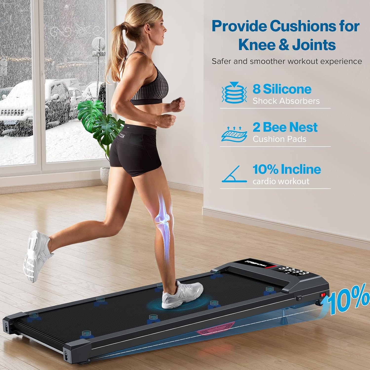 Anti-Slip & Shock Absorption Design: The walking treadmill utilizes 5-layer diamond pattern running Belt, 8 shock absorbers and 2 soft bee nest cushions which effectively increasing anti-slip properties, and minimize joint impact while running, providing a smoother and more enjoyable workout experience and allowing outdoor activities year-round. Furthermore, the 10% incline help to achieve fitness goals effortlessly.