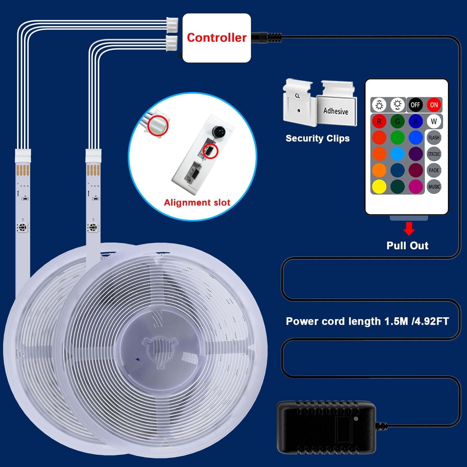 Diy Colors combinations& Length: You can scan the manual and download the exclusive Smart Control APP. 16 million colors with brightness adjustable options/Show different color patterns with the weather/Timing and schedule mode.You can schedule the smart strip light to turn on/off automatically through the mobile app; you can also set a countdown timer; set the wifi LED light to turn on or off at a specific time; turn on all the lights when you are home and turn off all the lights when you are out and about.