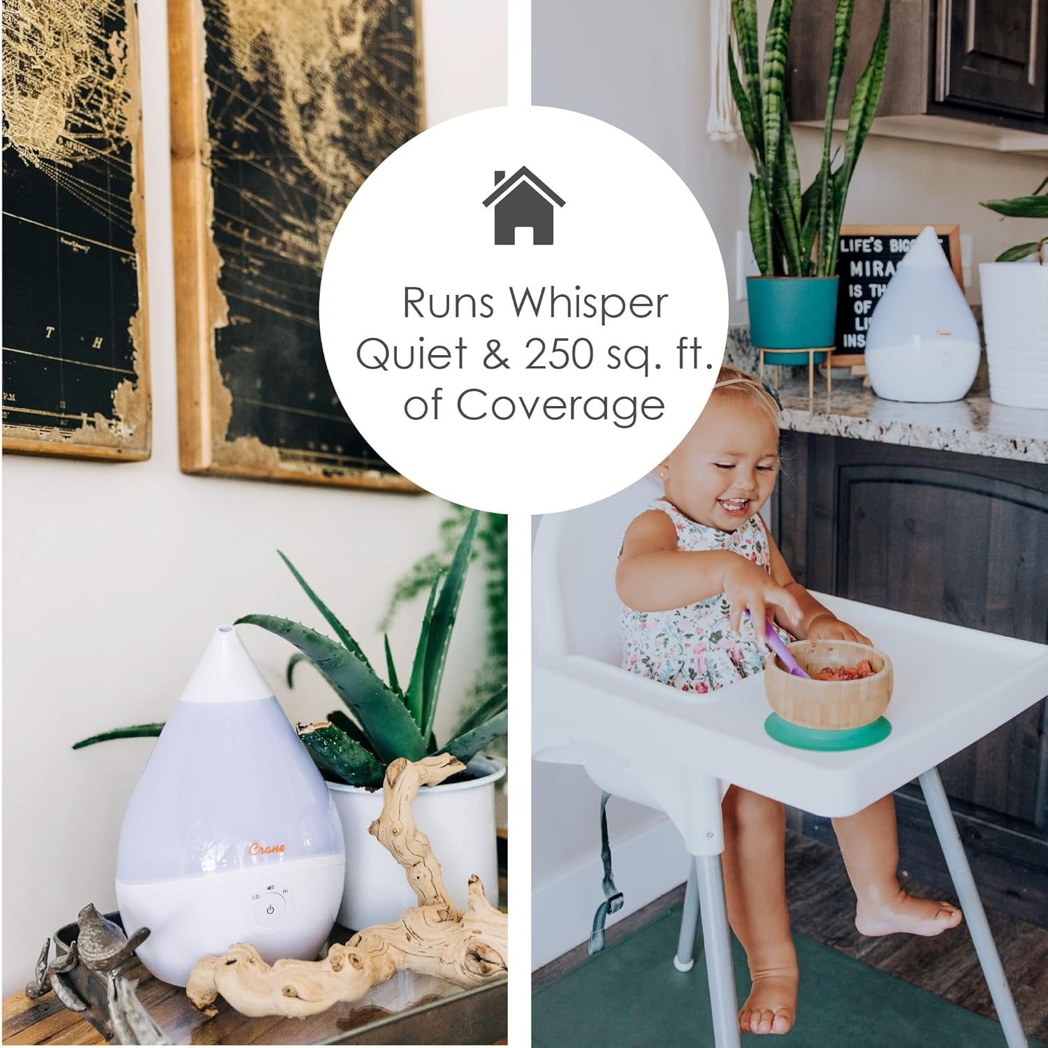Get relief and bring wellness to your entire family in style with a Crane Droplet Humidifier. Based off of the award-winning design of the Crane Drop and its top rated performance, Crane’s 0.5 Gal. Droplet ultrasonic cool mist humidifiers provide up to 250 sq. ft. of coverage and 15-hours of soothing moisture to help relieve the effects of dryness and congestion. Use with Crane’s vapor pads (HS-1950 & HS-1950L) for an elevated experience to help you and your family breathe easy and sleep through the night peacefully.