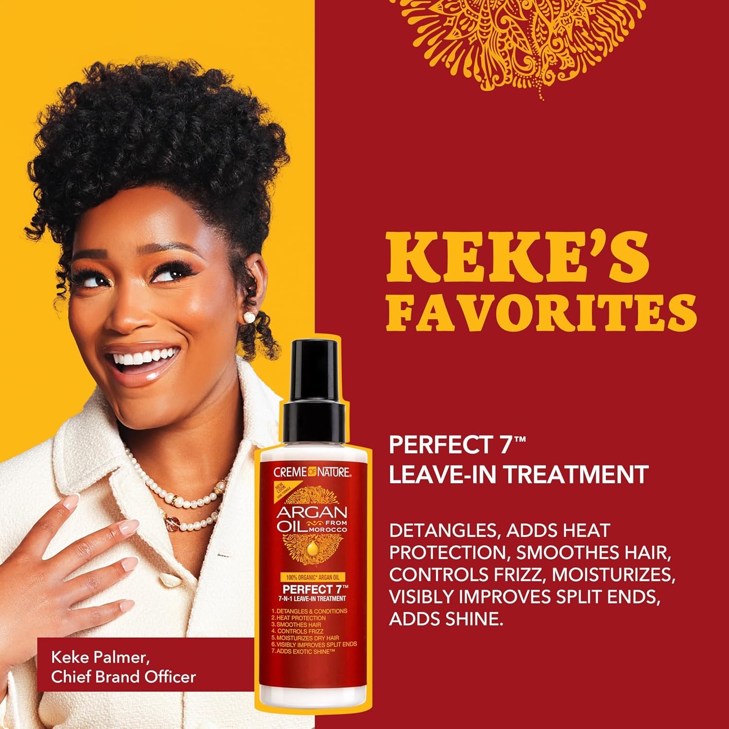 Perfect 7™ is a 7-N-1 leave-in treatment for beautiful, healthy hair with weightless Exotic Shine™. This product is perfect for all hair textures, giving hair instant health and beauty, while reducing the need for multiple hair care products. Experience 7 amazing benefits all in one hair treatment. This innovative rich, creamy formula contains Certified Natural Argan Oil from Morocco and conditioning agents such as Pro-Vitamin B-5 and Silk Amino Acids so you can achieve shinier, smoother and silkier hair.