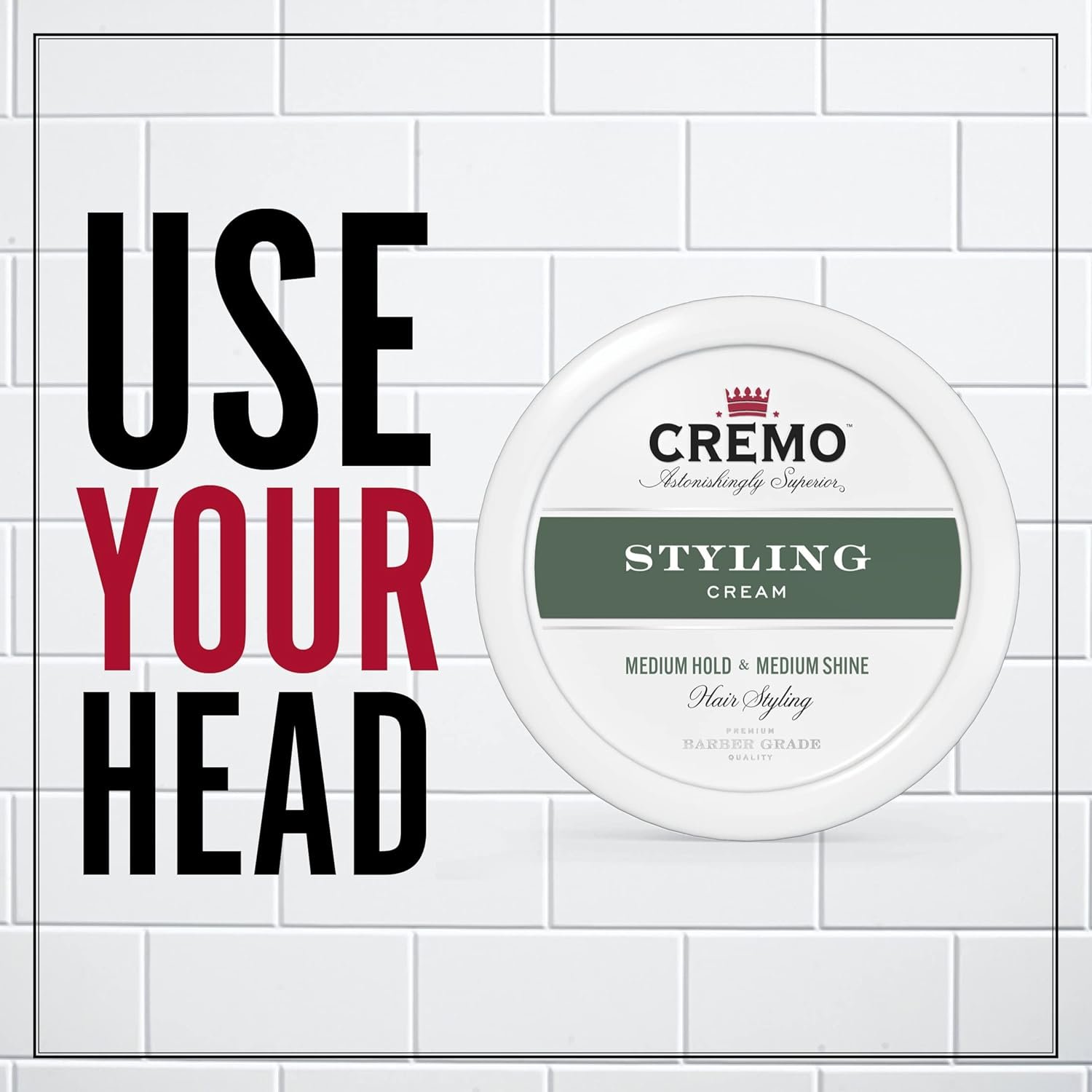 Cremo Premium Barber Grade Hair Styling Cream, Medium Hold, Medium Shine, 4 Oz