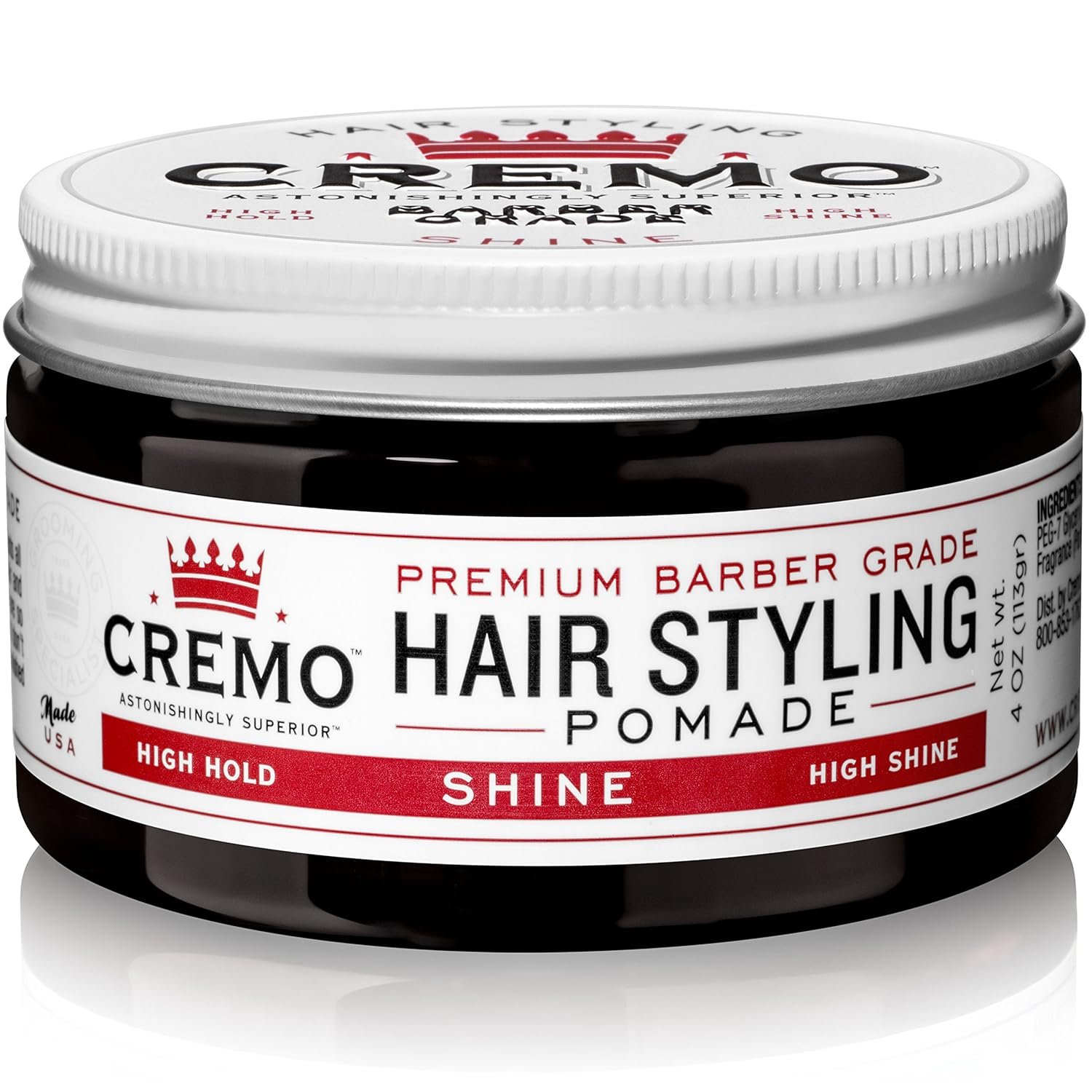 Cremo Premium Barber Grade Hair Styling Shine Pomade, High Hold & Shine, 4 Oz