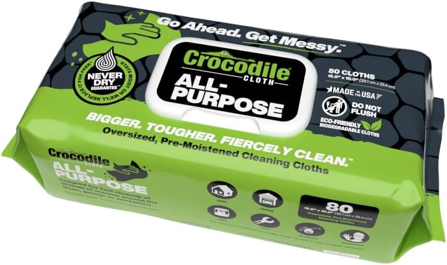 TOUGH, WET, AND MEAN: Crocodile Cloth Multi-Purpose Wipes destroy the competition in clean up. 4x more effective than standard wipes and formulated for fast, scrub-free cleaning and ultra absorbency, our alcohol-free, wipes are ideal for the home, garage, office, and on-the-go.