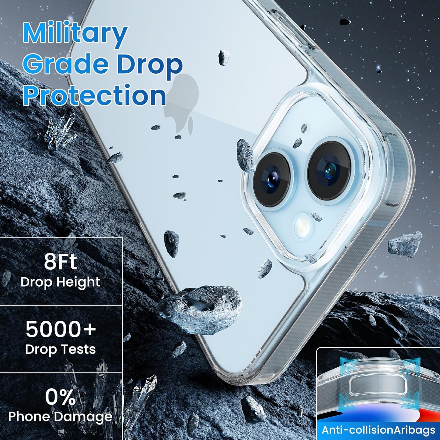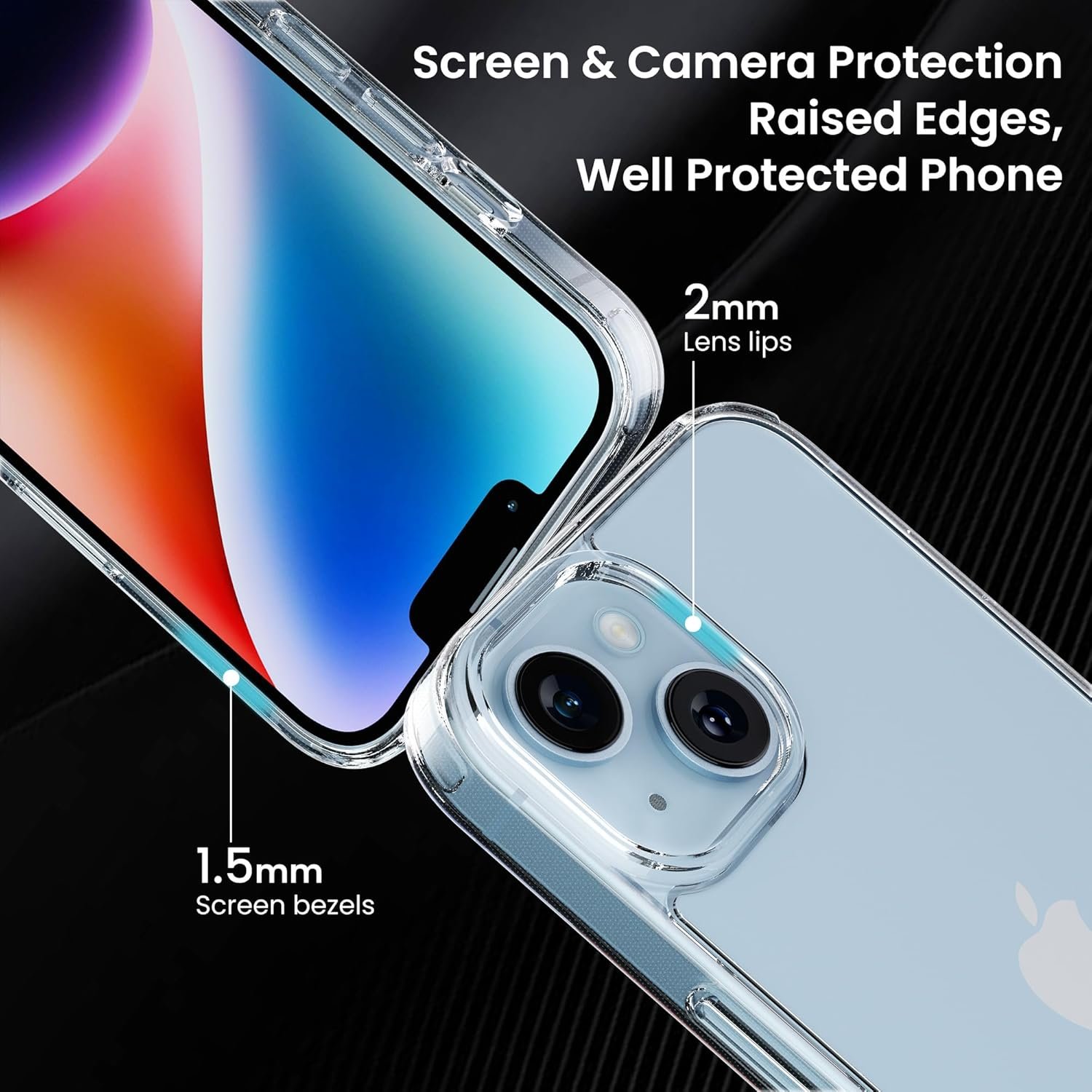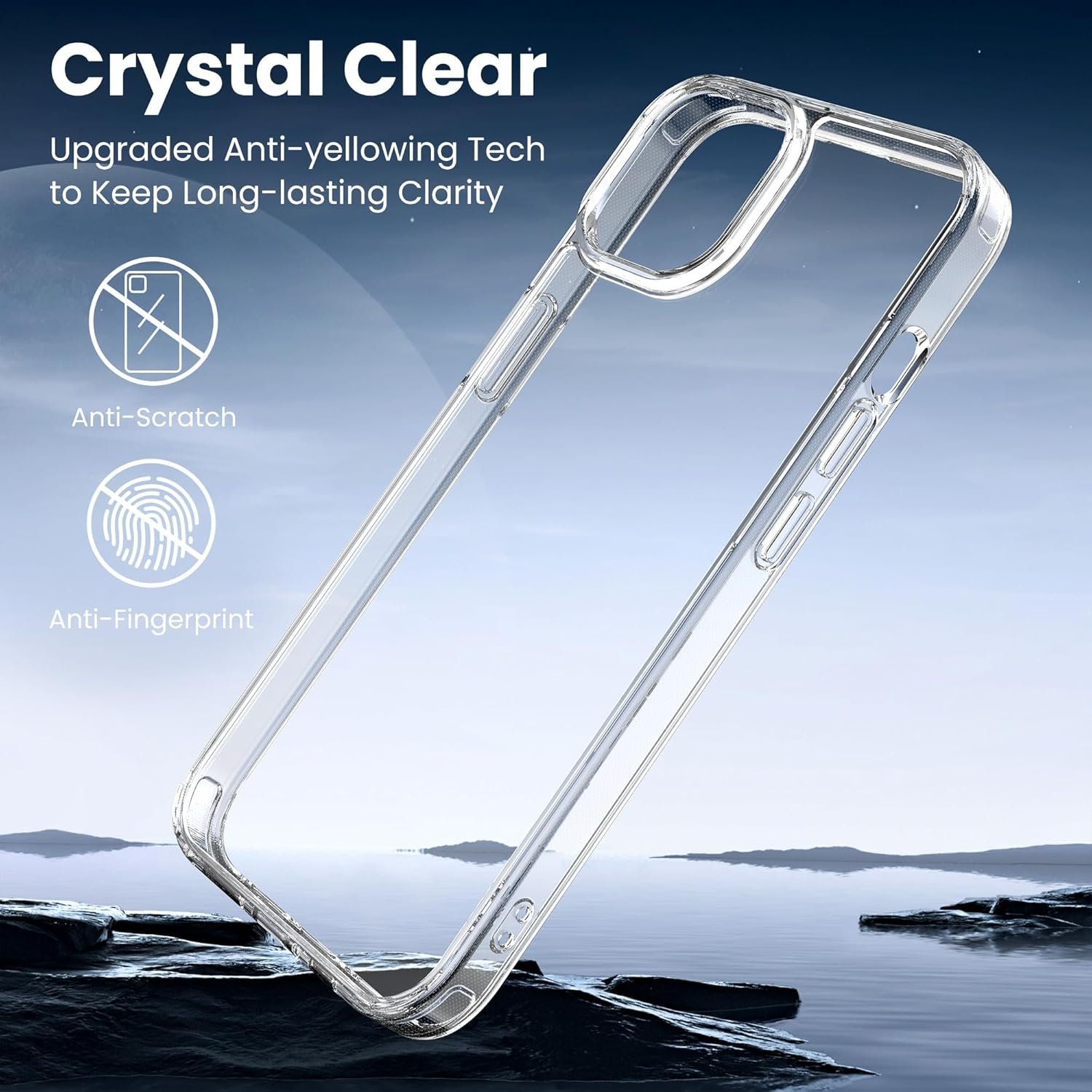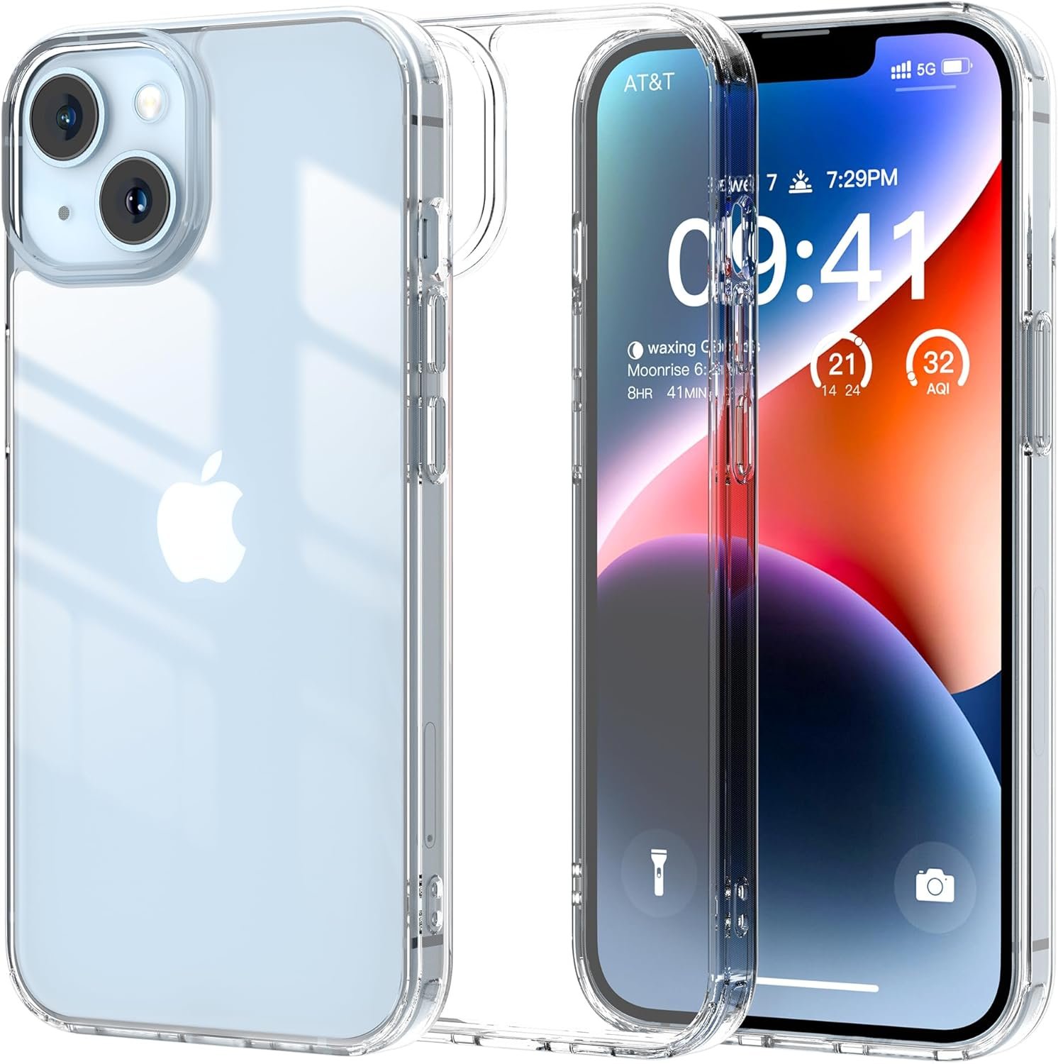 🌟【Crystal Clear & Never Yellow】Made with upgraded PC and TPU materials, provides long-lasting clarity. Designed with tiny dots in the TPU bumper avoids ugly watermark against the phone back and sides, hard PC back is anti-scratch and shockproof, the coated nano anti-oxidation layer effectively resists stains and sweat, remaining resistant to grease and yellowing over time. It’s easy to clean fingerprints. The clear phone case for iPhone 14/13 is an attractive, practical way to protect your mobile device in style
