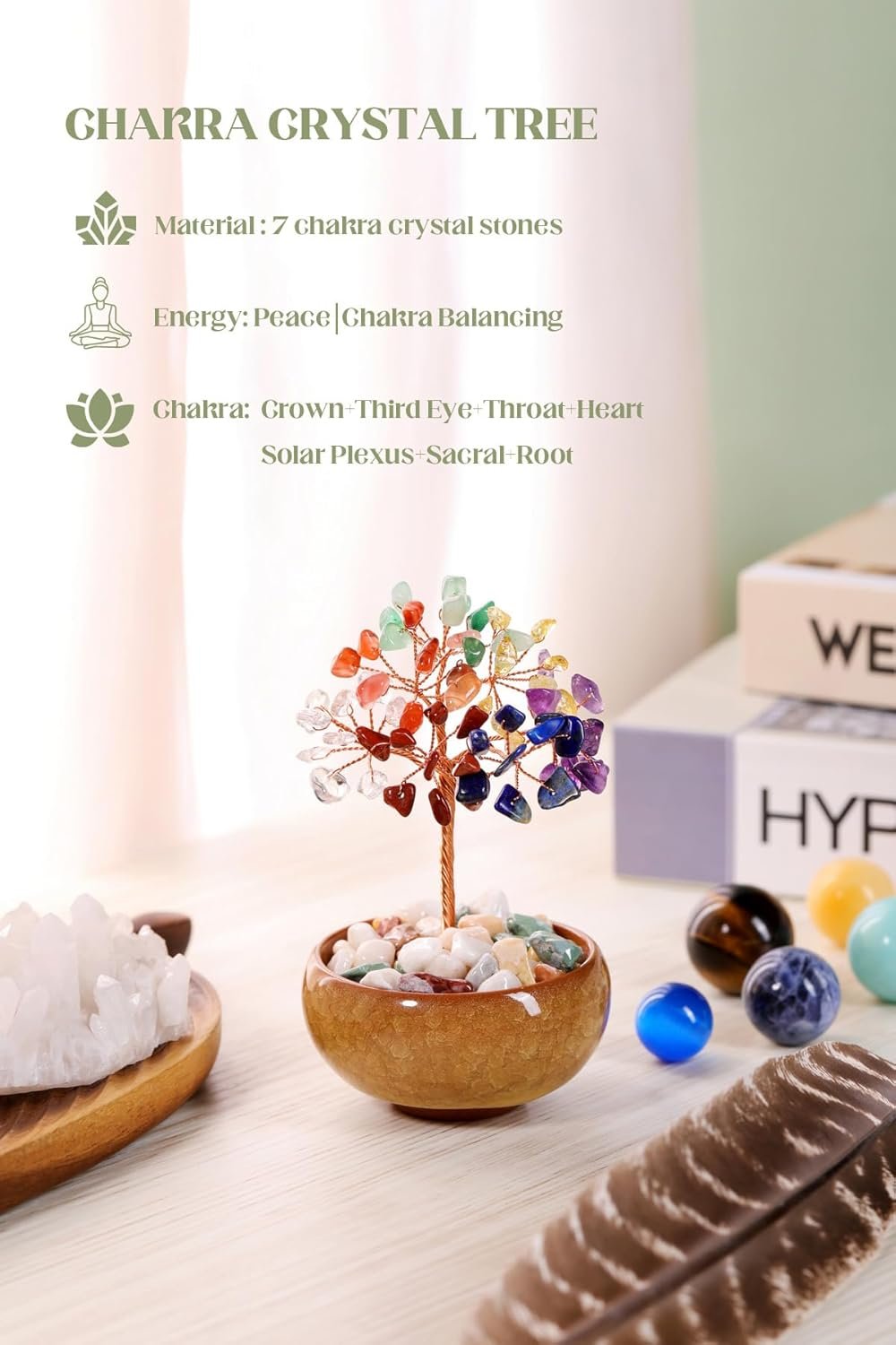[Chakra Crystal Tree]: a body with a fine energy structure, descrided as Chakra(energy center) in a sanskrit word. Each spiritual colored energy healing gemstone is strongly connected with a specific Chakra to raise your vibration and to emit positive flow of energy, helps to balance your chakra, reiki healing, promote positive energy, enhance creativity and confidence