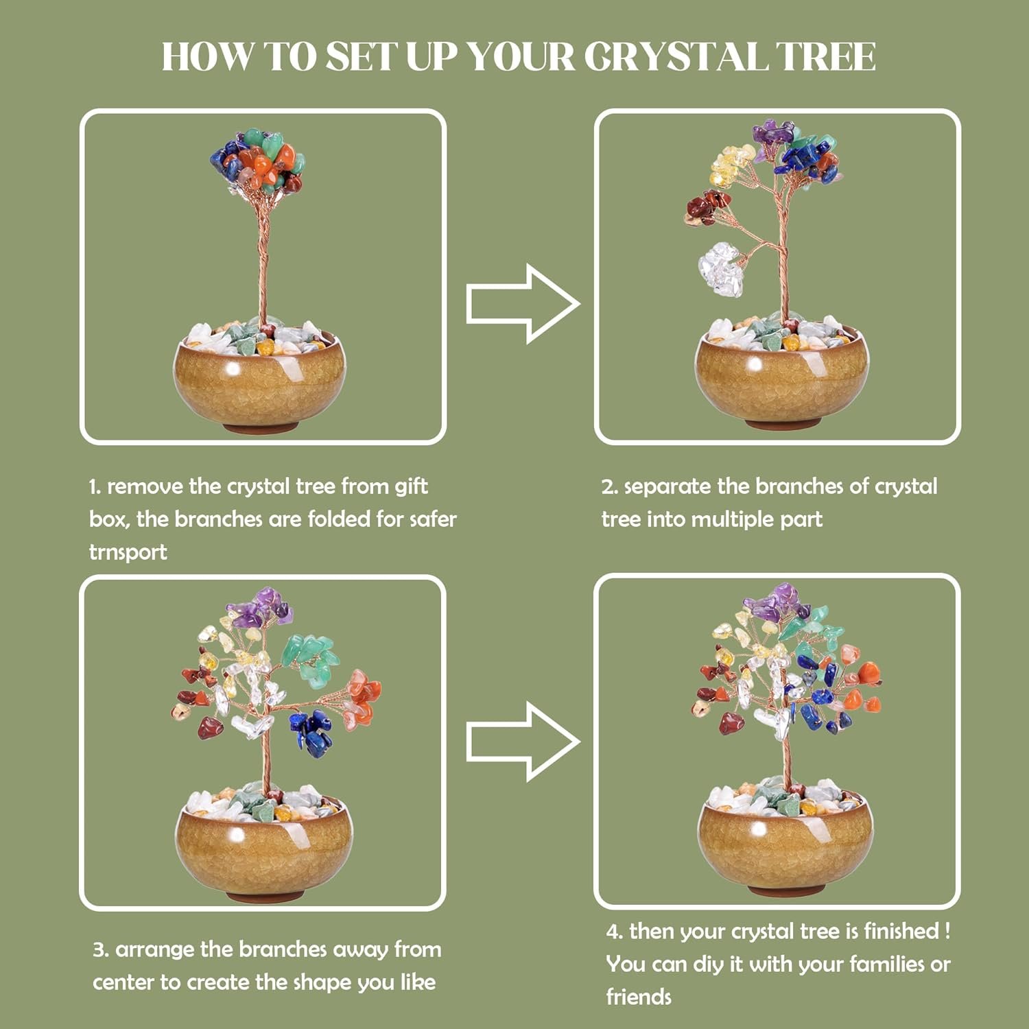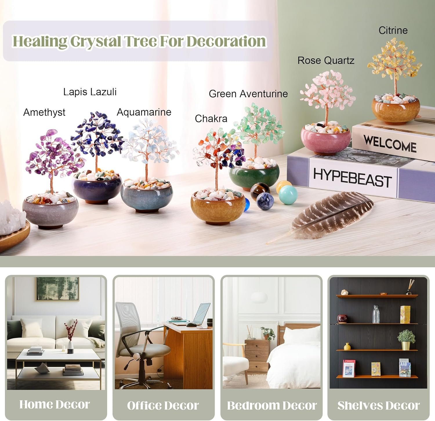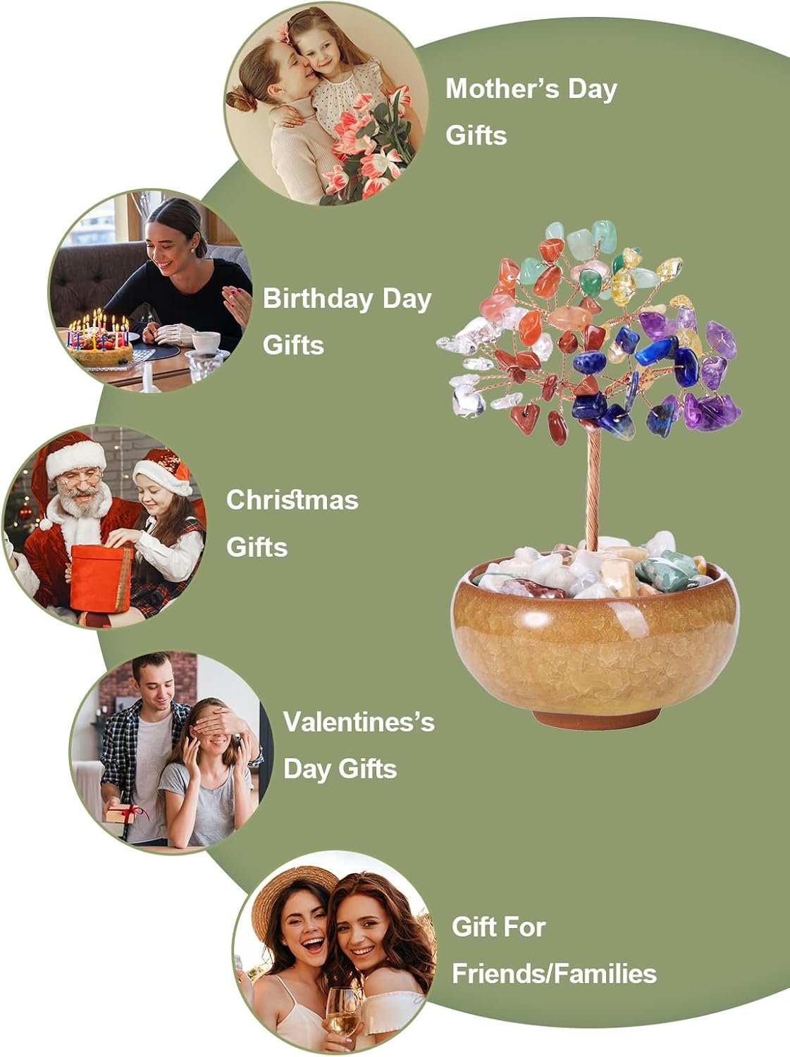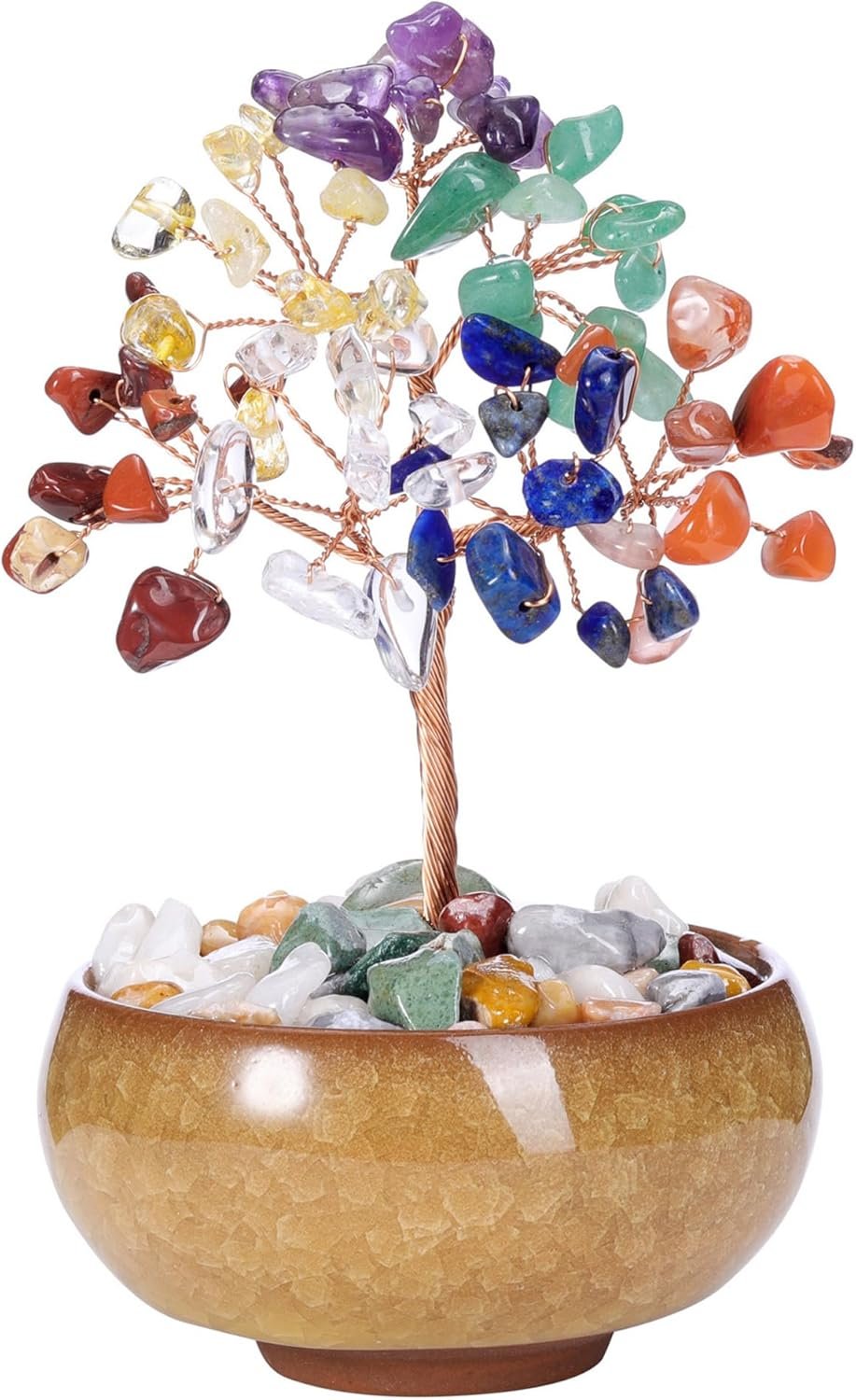 [Crystal Tree]: handmade chakra crystal tree 7 chakra stone bonsai tree is made of natural chakra crystal stone as leaves with ceramic base. A exquisite feng shui money tree decoration for home /living room/ office/desk decoration, attract wealth, happiness ,opportunity, good luck,positive energy and all good things to you and families
