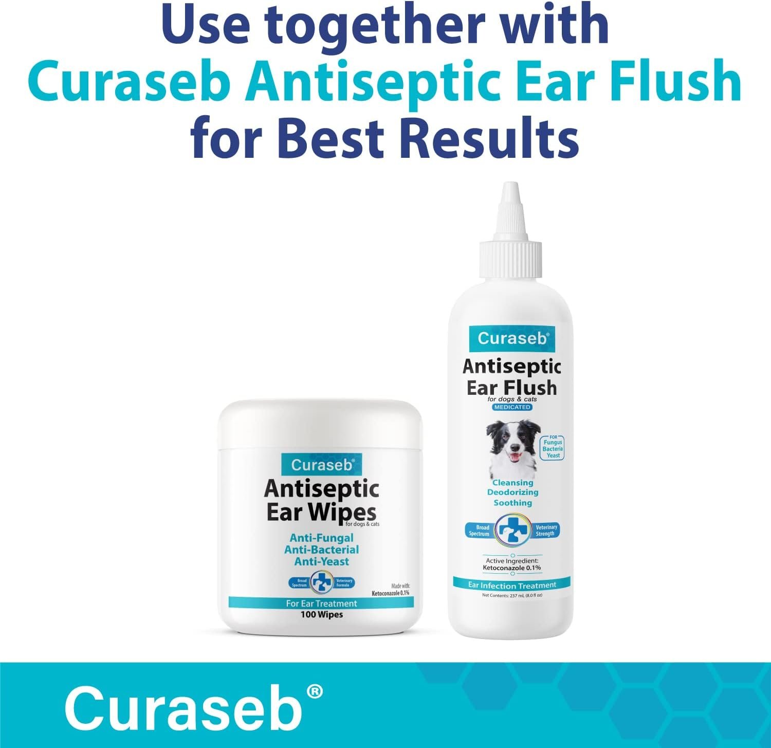 Curaseb Cat & Dog Ear Infection Treatment Wipes – Soothes Itchy & Inflamed Ears – Cleans Debris and Buildup – 100 Count