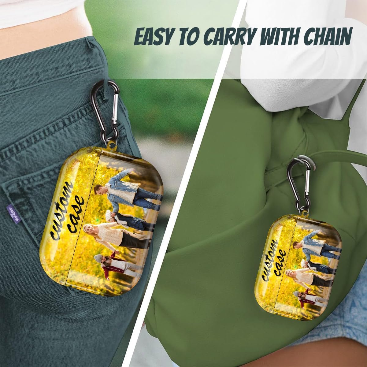 Easy to Carry: Custom Case for airpods/airpods pro is small and easy to carry, with a detachable hook/carabiner, just hang it on your belt or bag, no matter where you go, you can easily use it.