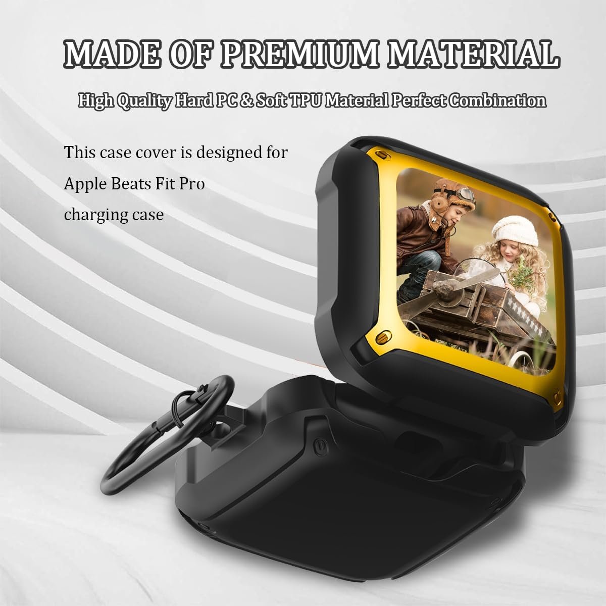 [PREMIUM MATERIAL]: Particularly designed for Apple Beats Fit Pro, made with premium environmentally friendly PC+TPU material. New colorblock armor look, drop resistant headphone cover includs keychain includs. It is widely used in electronic product protective covers and is well received by consumers. Professional mold making to perfectly match the shape of the headphone. Attention!!! Case NOT NOT NOT compatible with “Beats Studio Buds 2021” & “Beats Powerbeats Pro 2019”.