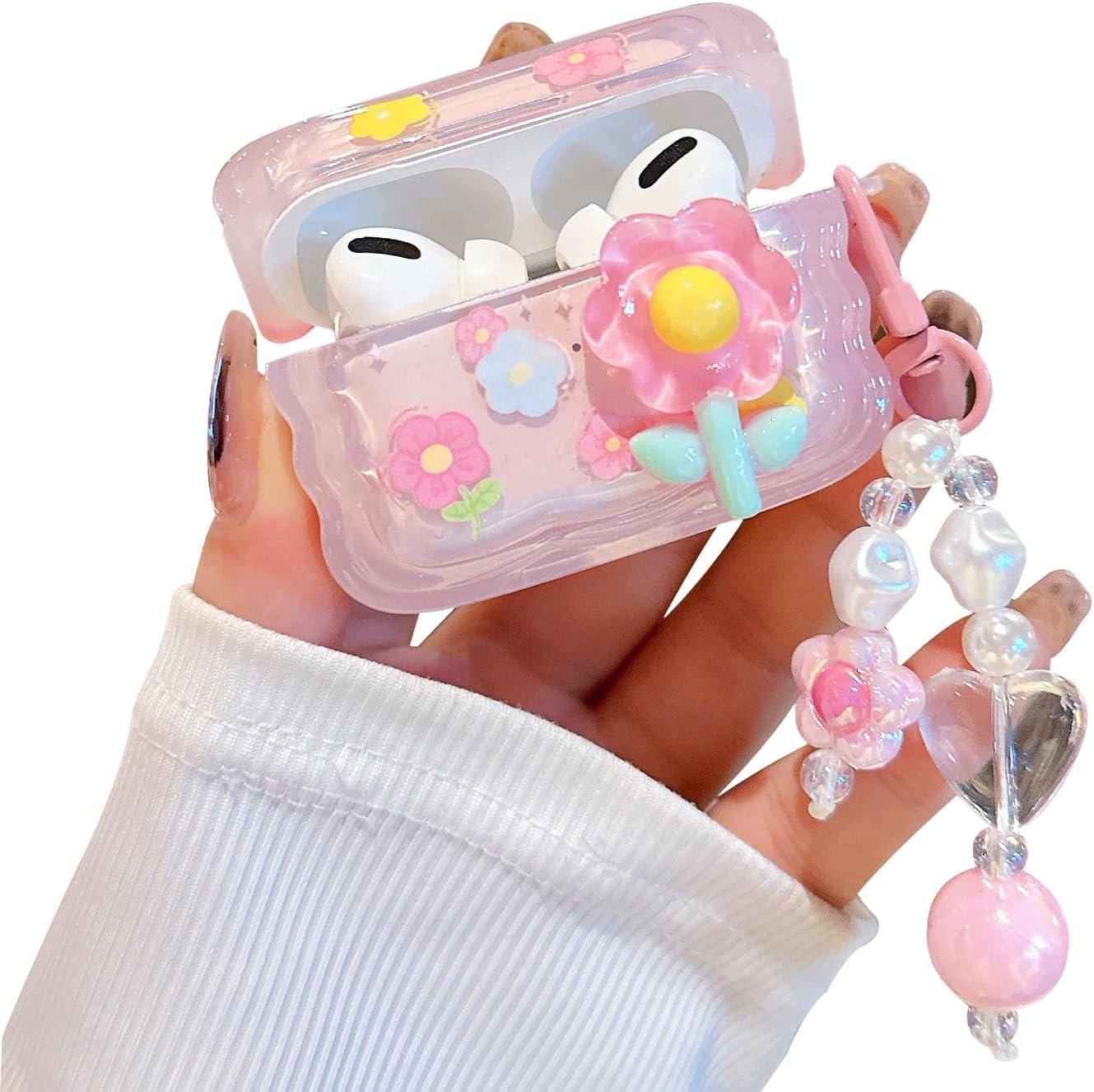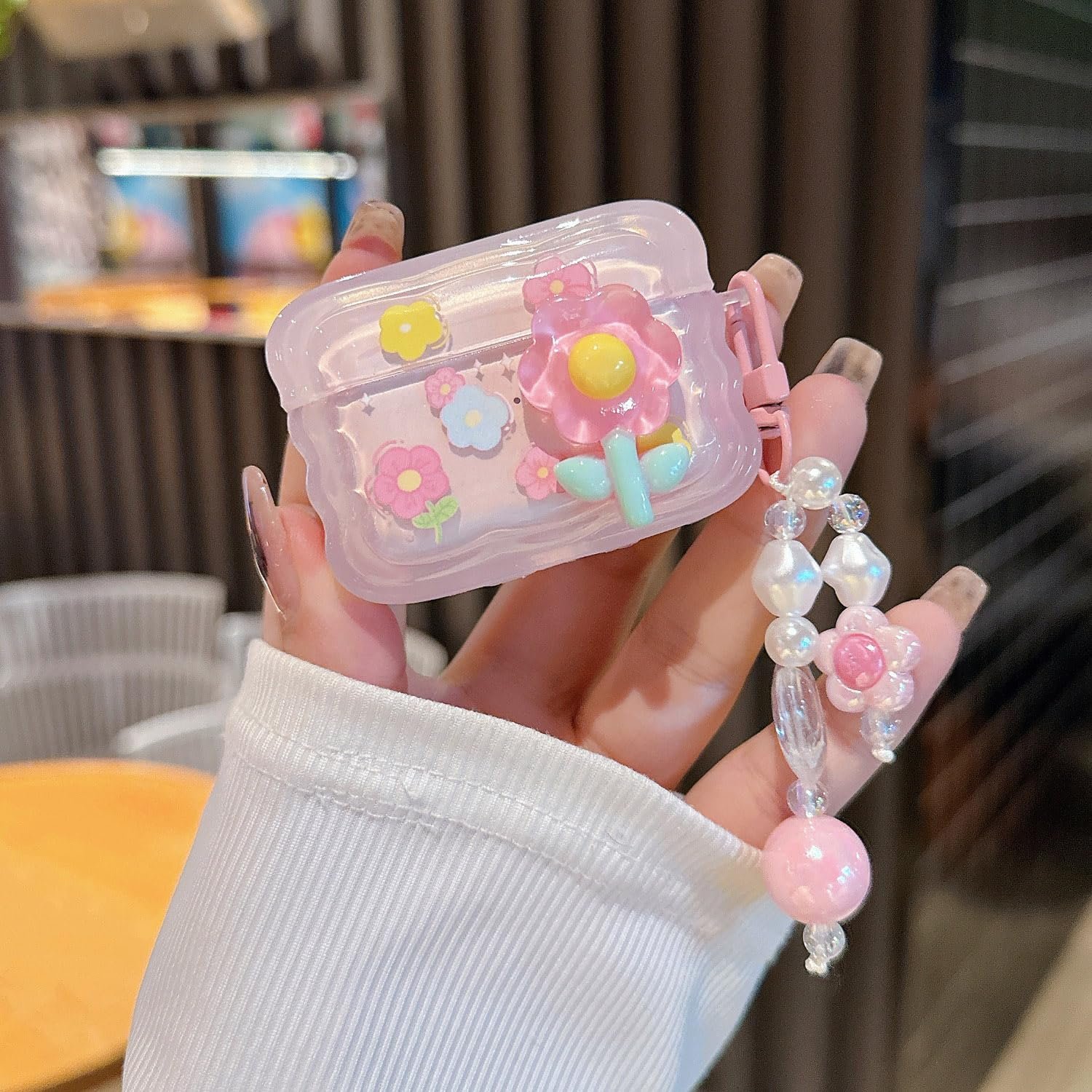 Cute pink aesthetic 3D flower clear design case for AirPods Pro 2 makes it more Eye-catching and pretty, and bring you a happy relex lifestyle.