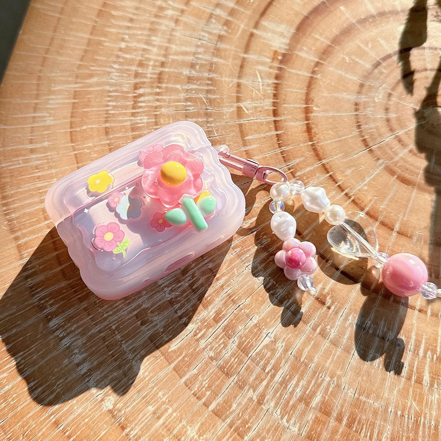 The earphone case comes with a cute floral pearl keychain, easy to attach on handbag or backpack without fear of losing them, also a nice looking decoration for your handbag or backpack.