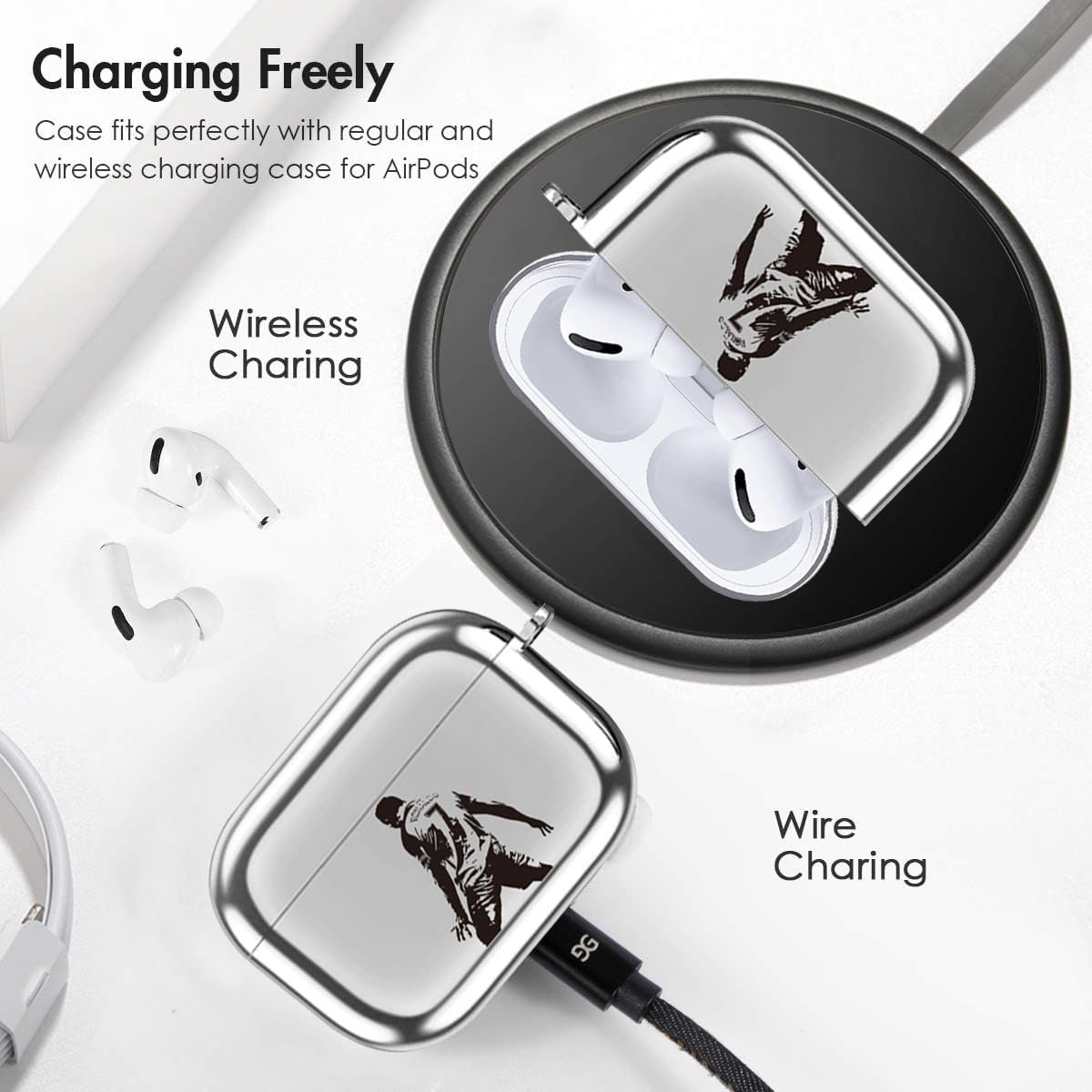 Precise cutouts,Charge your earphones without removing the cover, Supports both wireless and wired charging,The LED light is visible when charging.