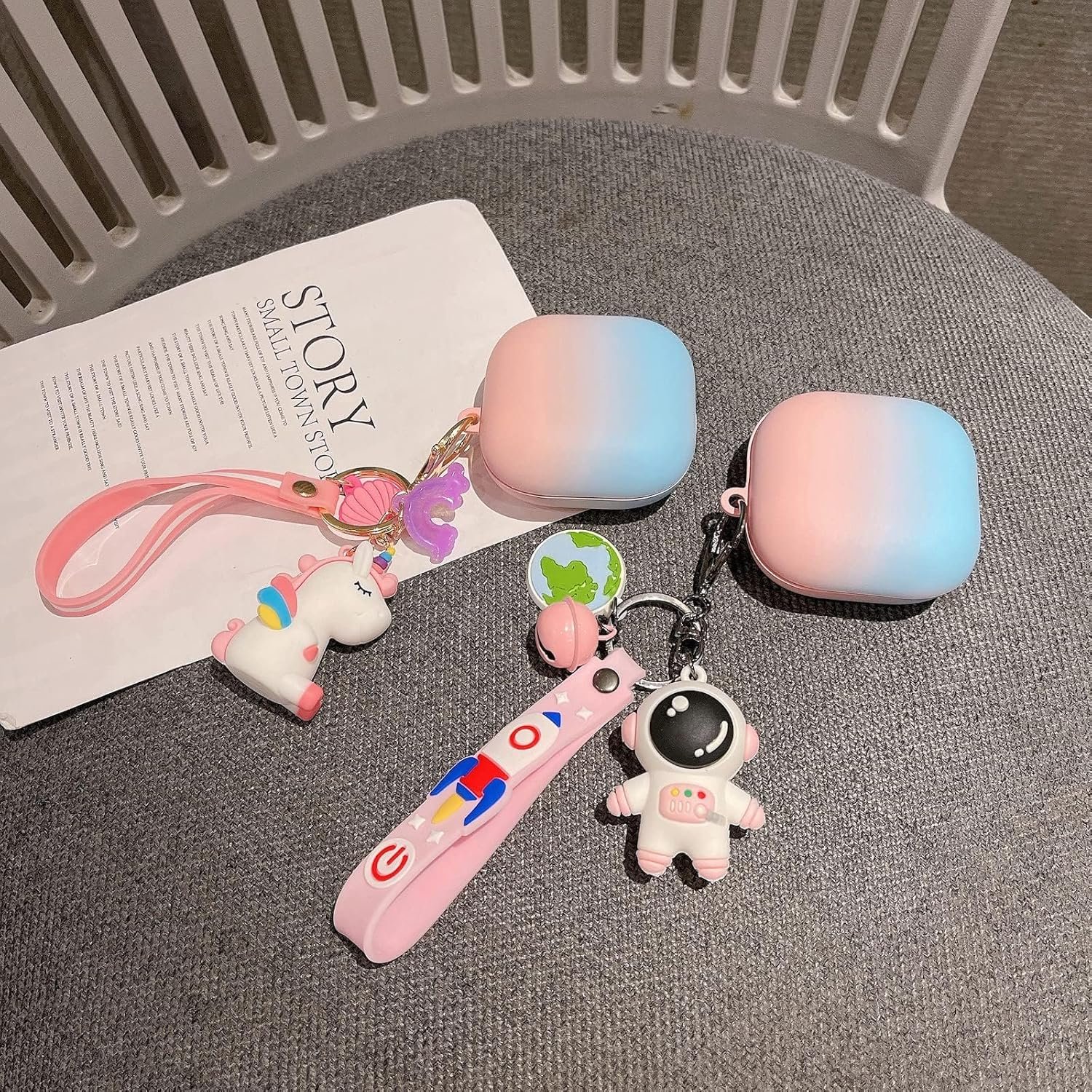 Cute Compatible with Beats Fit Pro Case with Keychain, 2 in 1 Hard Protective Shockproof Fashion Cover with Cartoon Portable Keychain Clip, Best Gift for Girls and Women (Astronaut)