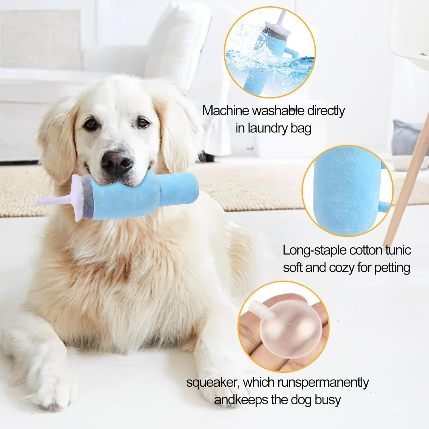 Cute and Funny Dog Toy Tumbler – Squeaky Interactive Fluff and Tuff Dog Toys, Soft Handle Cup Design Dog Toys for Aggressive Chewers (blue)