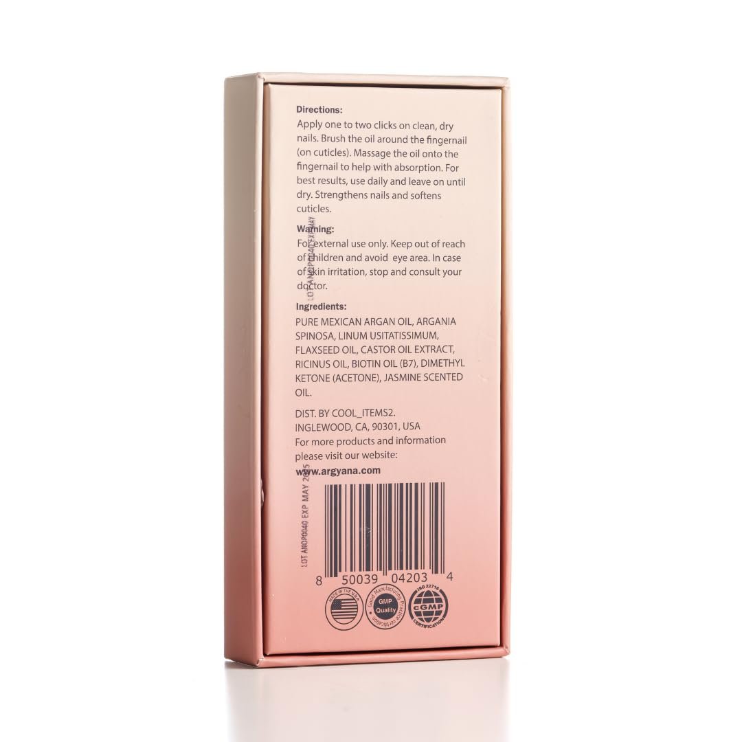 Direction: Apply one to two clicks on clean dry nails. Brush the oil around the fingernail (on cuticles). Massage the oil into the cuticles to help with absorption. For best result, use daily and leave on until dry. To strengthens nails and softens cuticles.