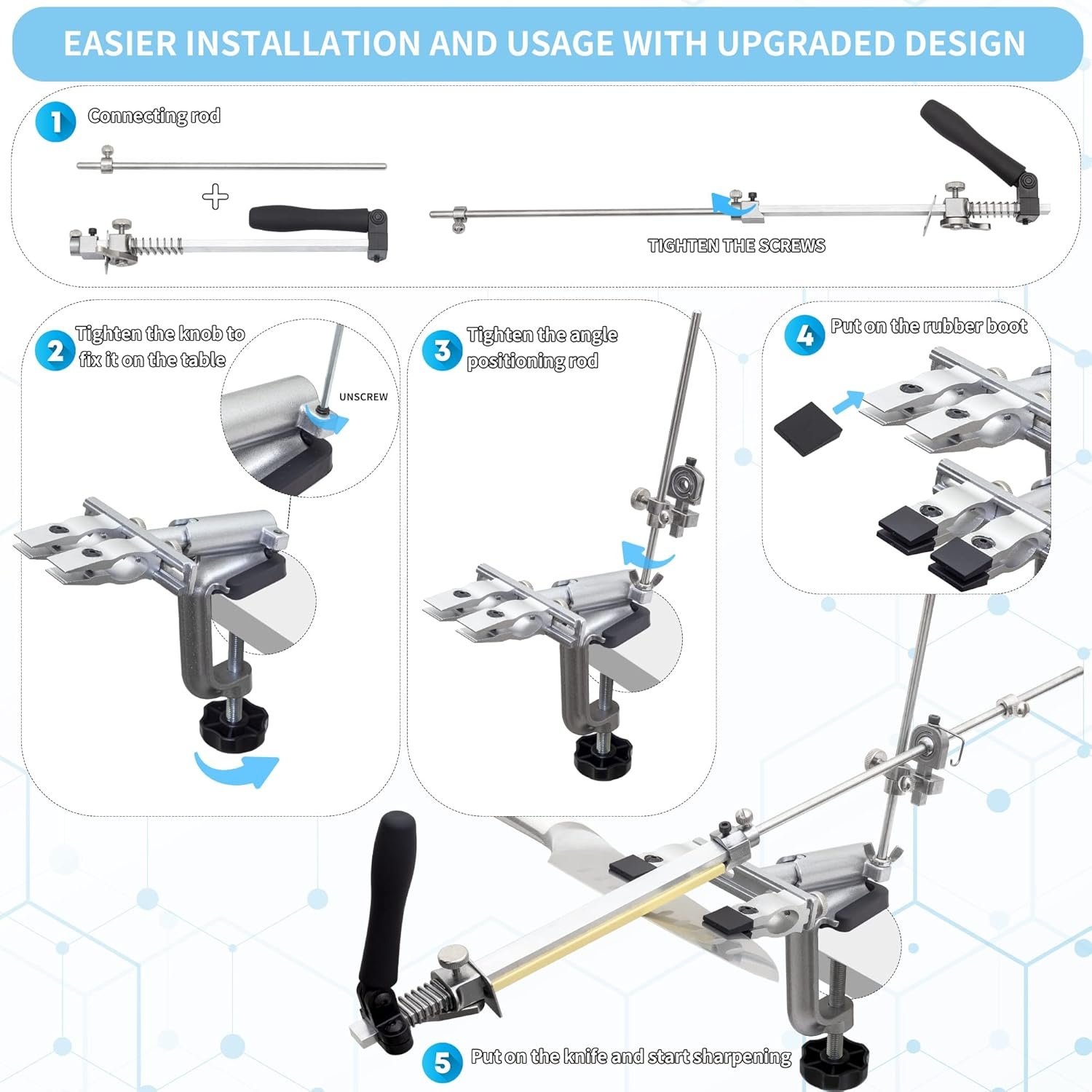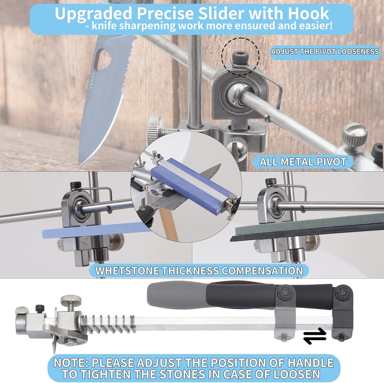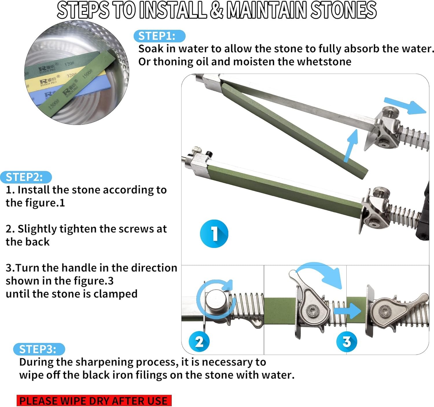 Safety Guarantee Design: Our knife sharpening kit includes a safety design with the handle positioned above the knife blade, preventing hand injuries while sharpening; Note: For more accurate sharpening, use a Goniometer app to set the angle;