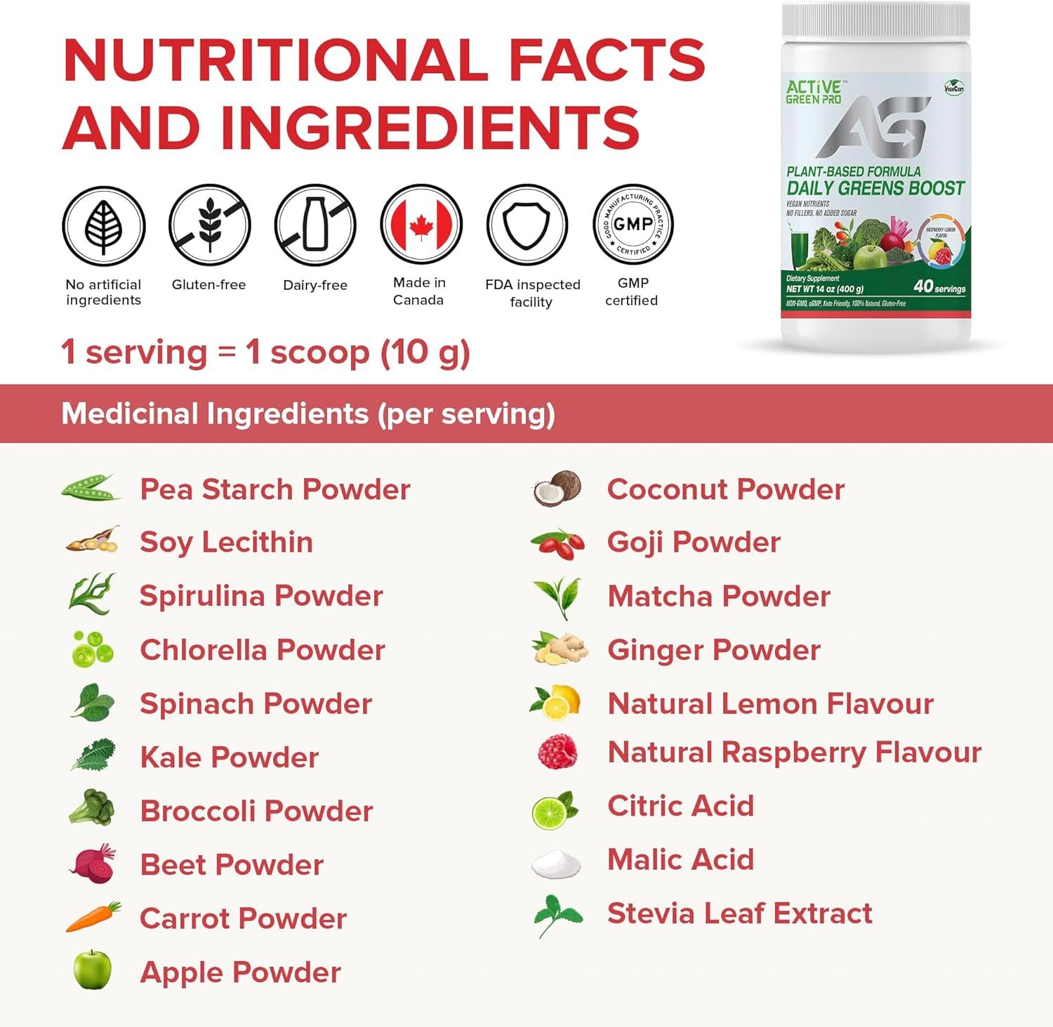 🍁 MADE FROM QUALITY INGREDIENTS – Proudly Canadian. Our Active Green Pro Powder is made with quality and research-backed ingredients in our GMP Certified and FDA inspected facility. The superfood powder we have used is also free of artificial flavors, colors or sugar, gluten, wheat, dairy, or yeast.