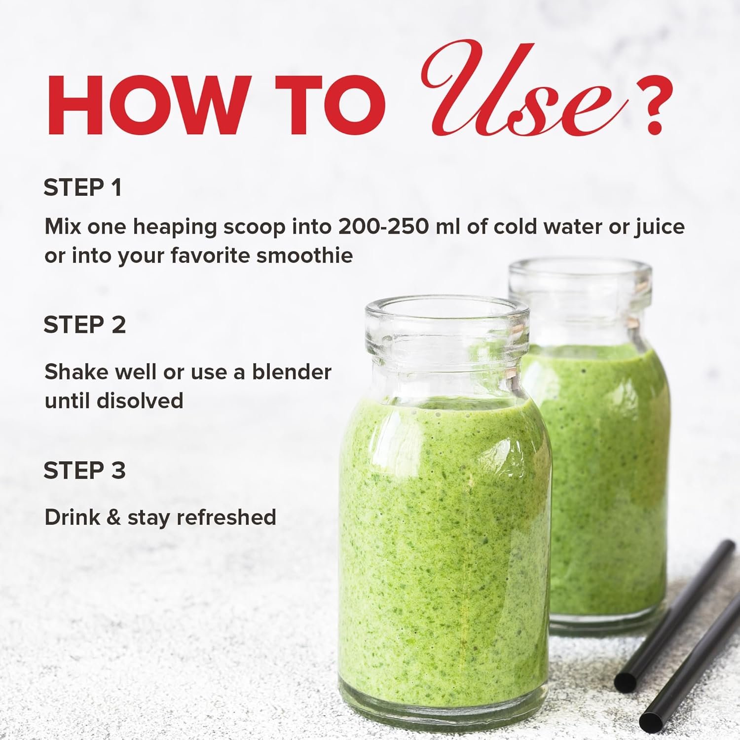 🍹 EASY TO MIX – Mixing our greens powder is super easy! Mix one heaping scoop into 200-250 ml of cold water. Or use it as your smoothie powder. Stir it until it’s totally dissolved. You can also use a blender bottle.
