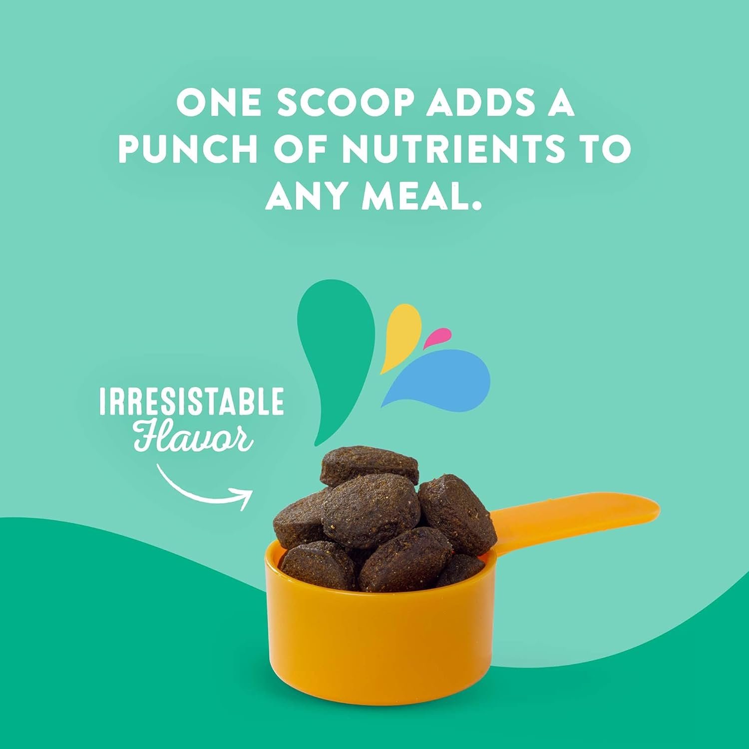 SMART AND SAVORY DOG FOOD TOPPER: Add it atop all their favorite foods with the included serving scoop for a touch of extra tastiness that’s free of artificial flavors, colors, wheat, and soy so your pet gets everything they need, and nothing they don’t.