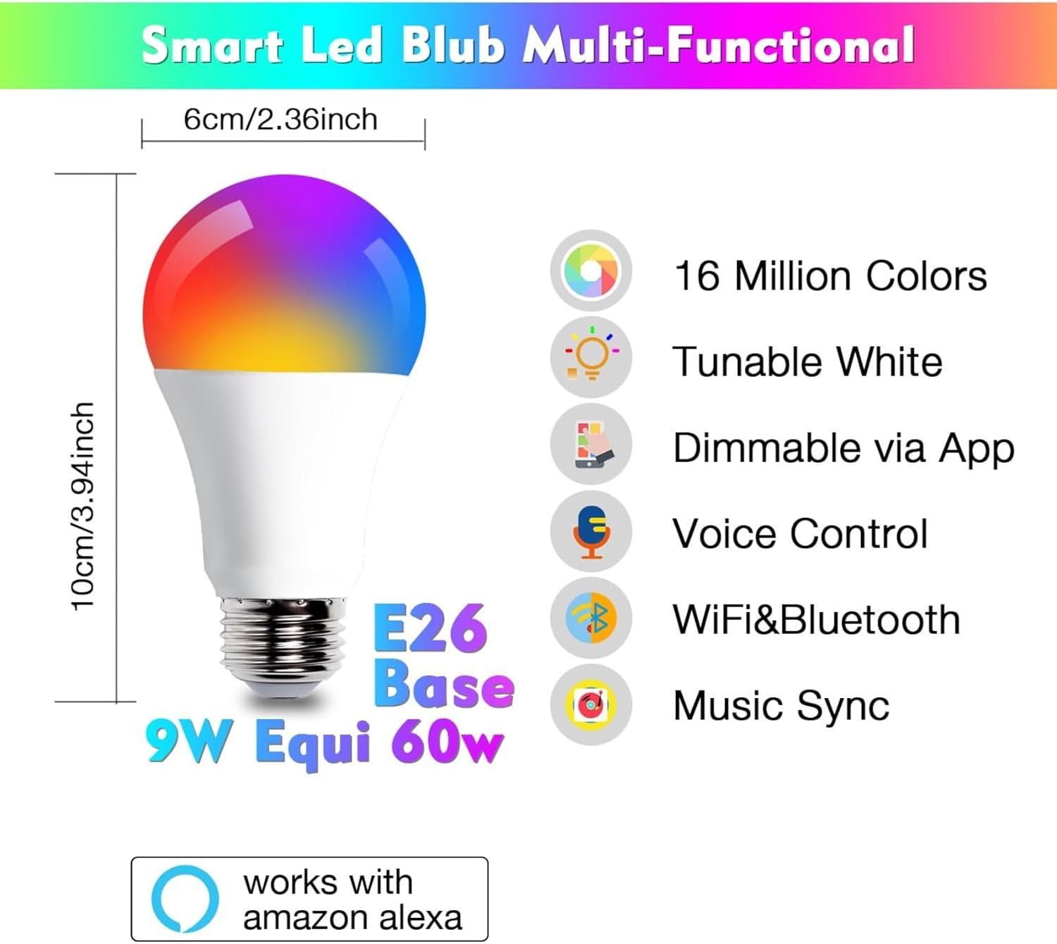dalattin A19 Led Light Bulb, Smart Bulb WiFi & Bluetooth RGBCW Color Changing Light Bulbdalattin A19 Led Light Bulb, Smart Bulb WiFi & Bluetooth RGBCW Color Changing Light Bulb